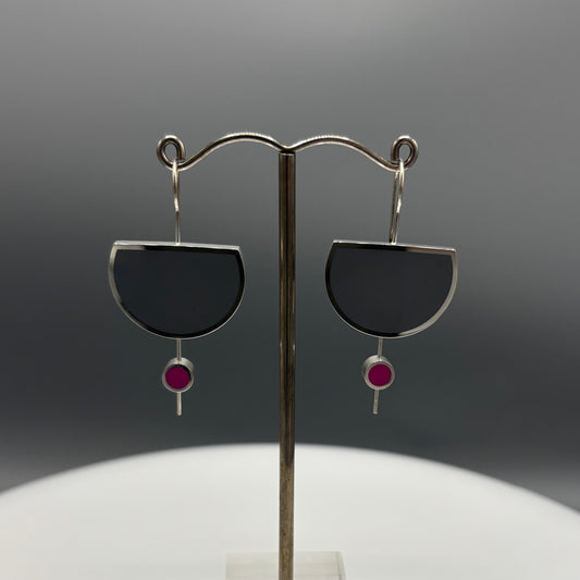 Wilde Works - Sterling silver and resin ‘Eclipse’ Earrings (Grey/Hot Pink)