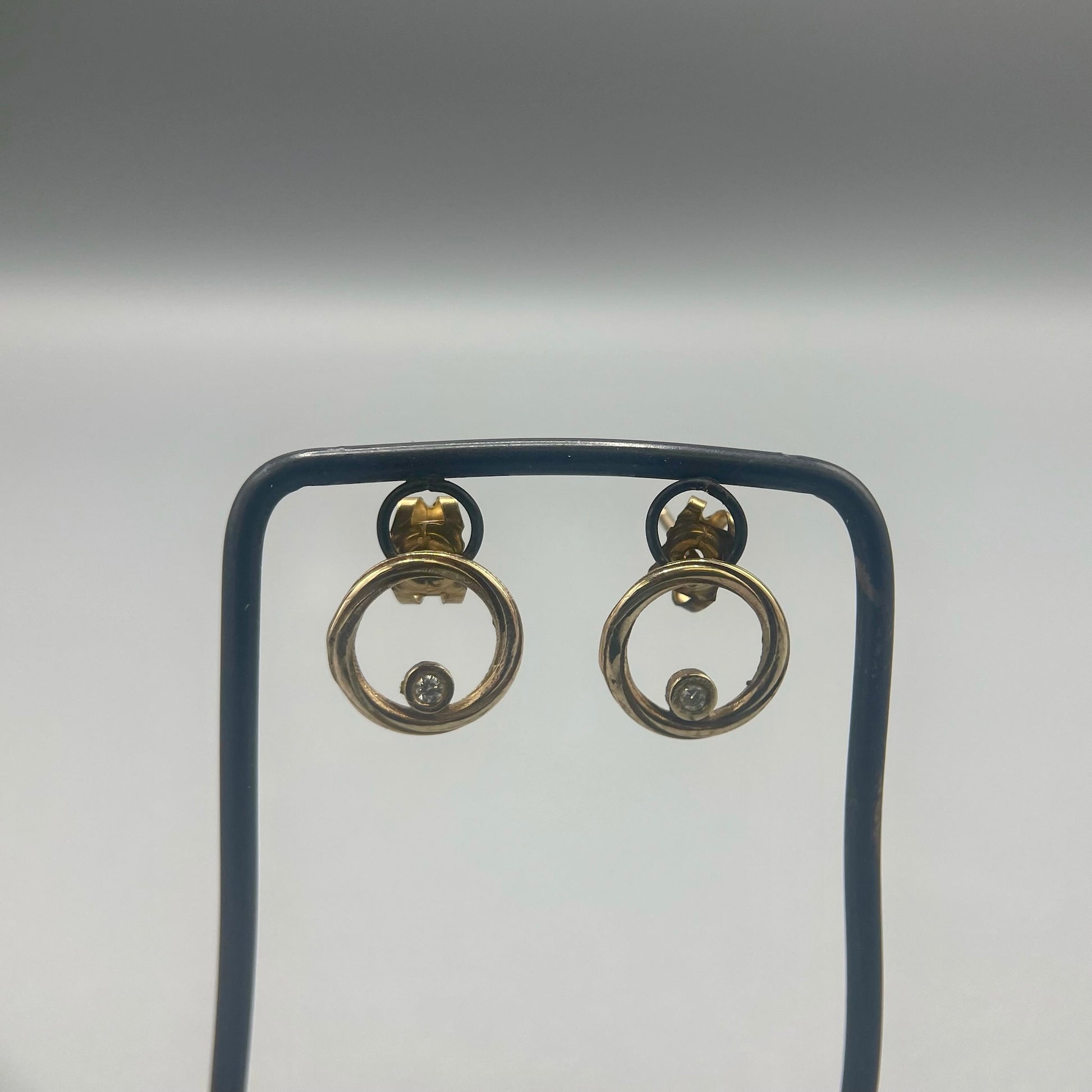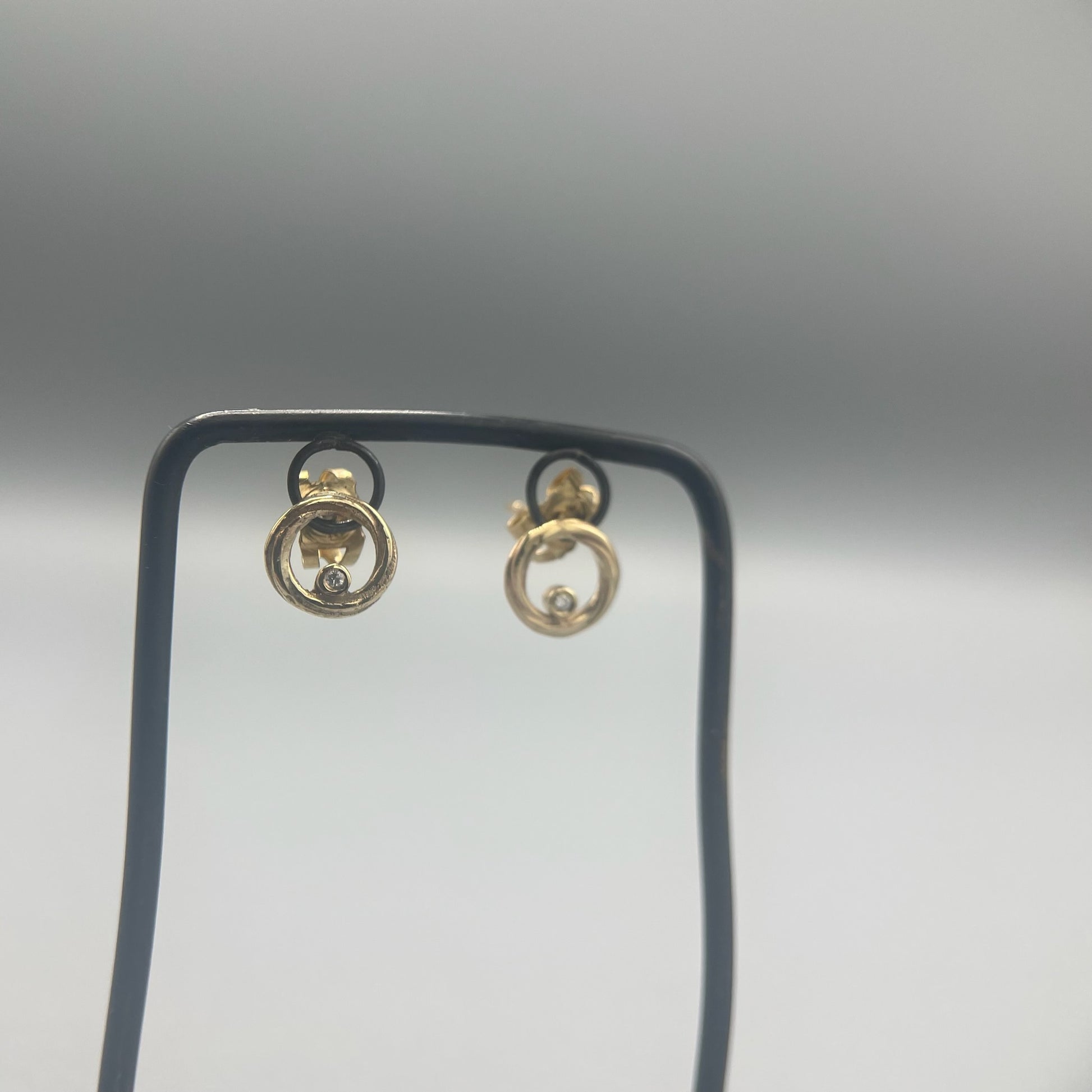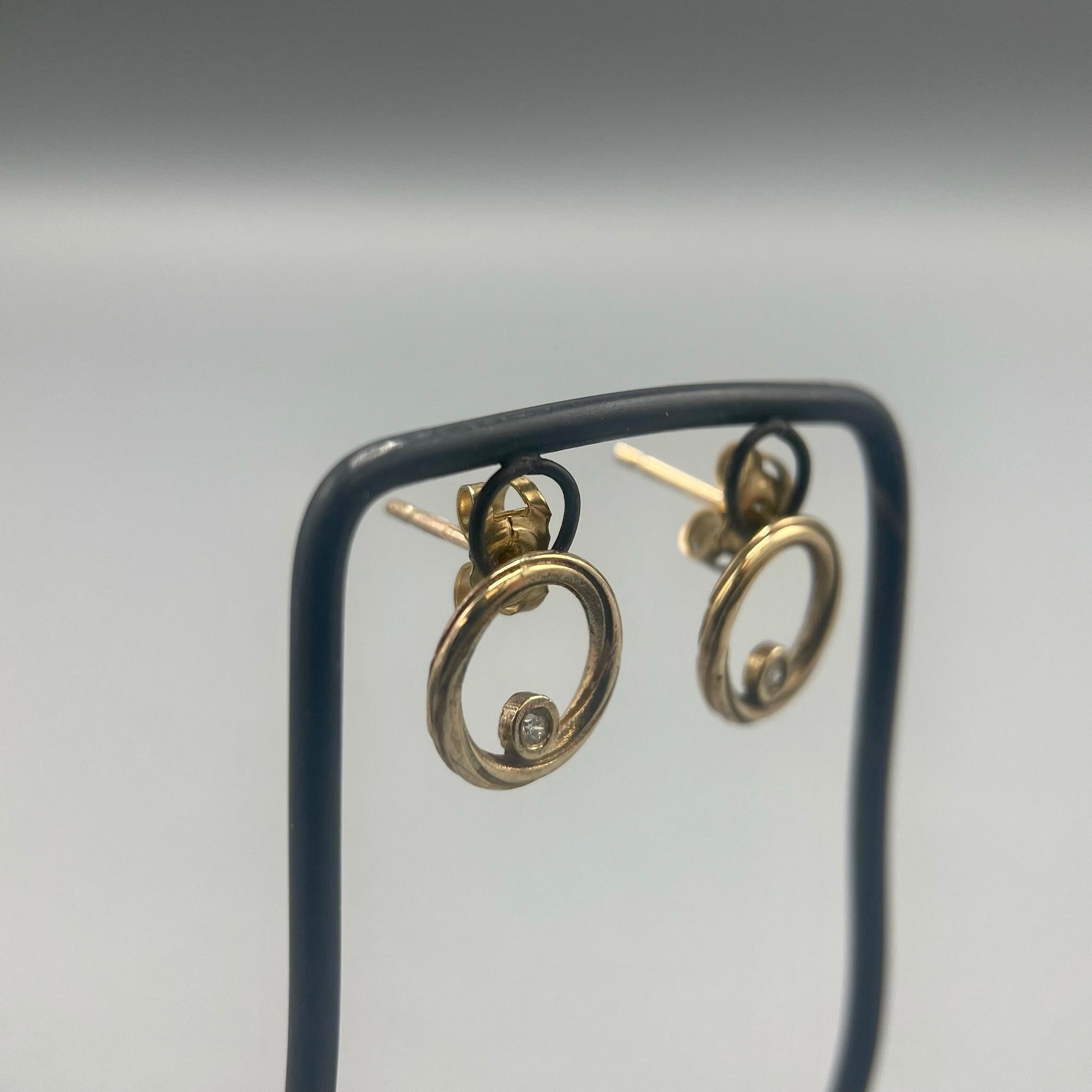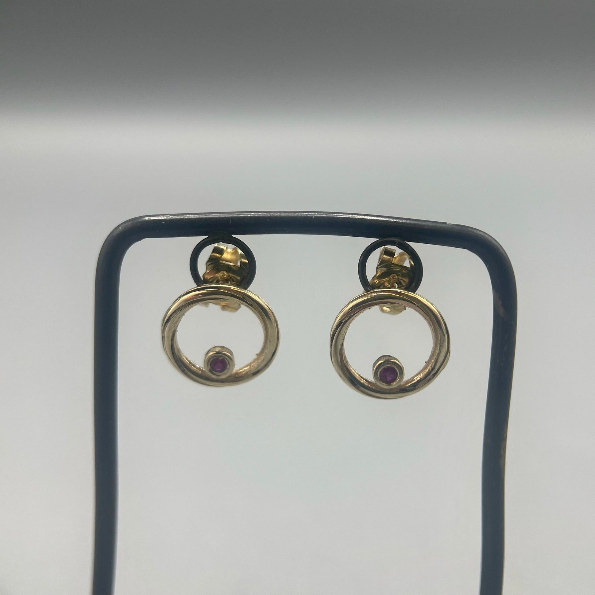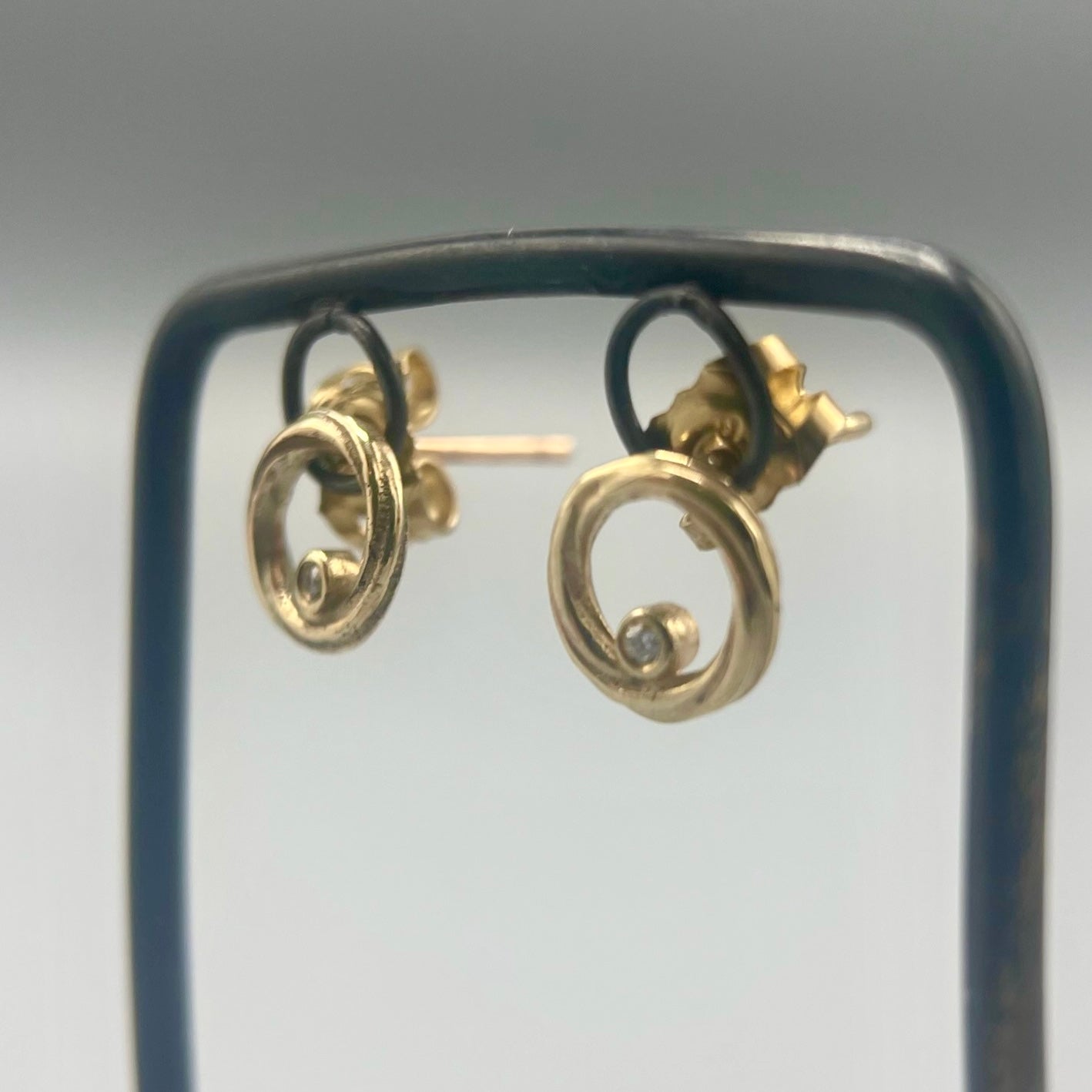 Handmade yellow gold stud earrings by Alice Gow from her 'Twist Continuum' collection with ruby or diamond addition.