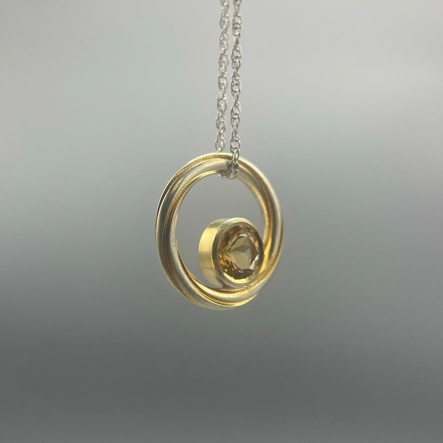 Handmade twist continuum pendant with a citrine stone by Alice Gow.
