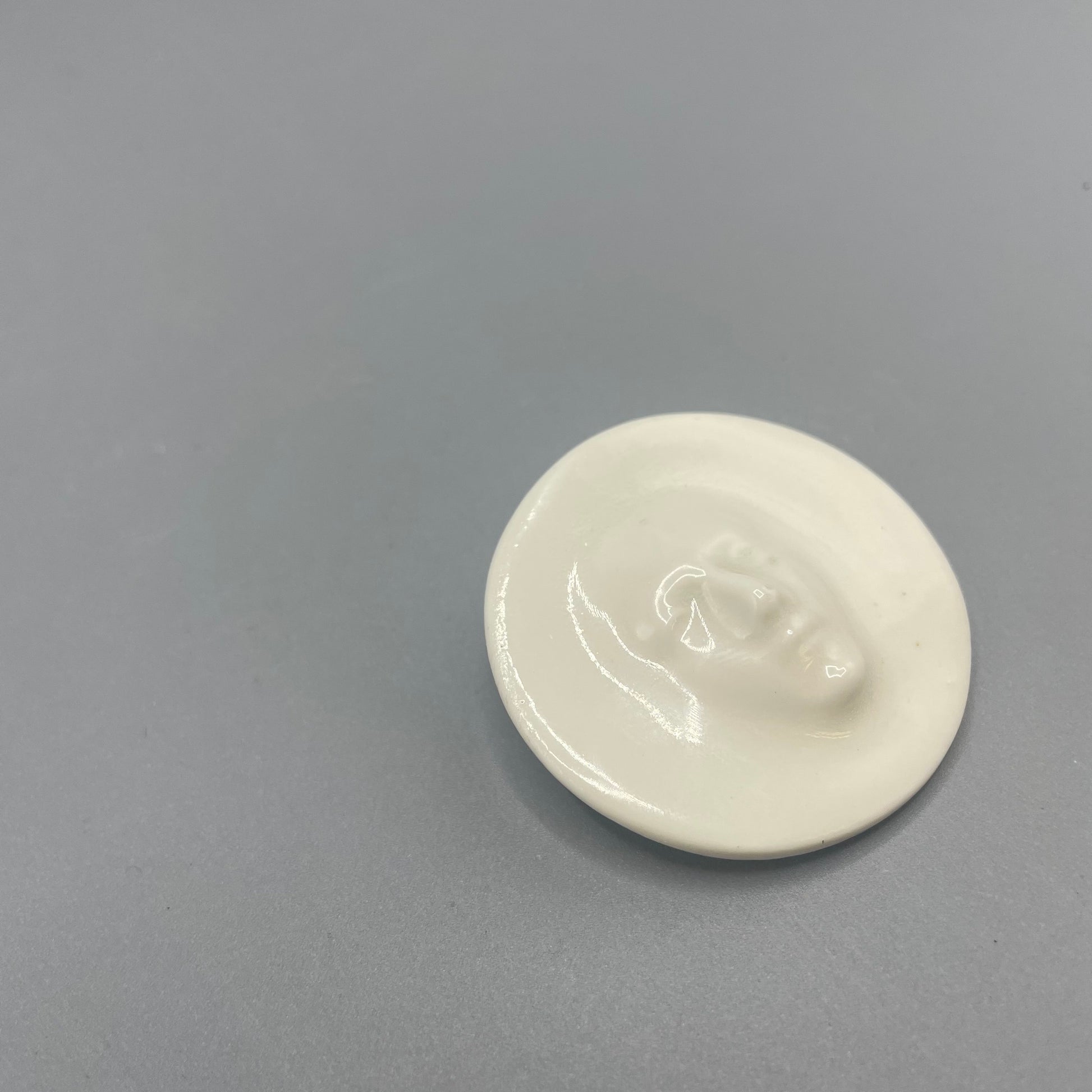 Figurative details are taken from religious figurines, the human body and ornamental surfaces. These are then transferred as delicate 3D relief back onto the wheel thrown vessel walls, appearing to push through the surface of the vessels with a sense of animation and metamorphosis.