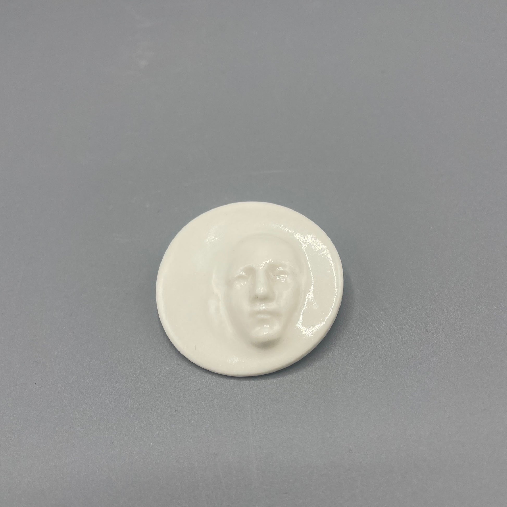 Delicately handmade madonna brooch with impressed figurative detail by Anja Lubach.