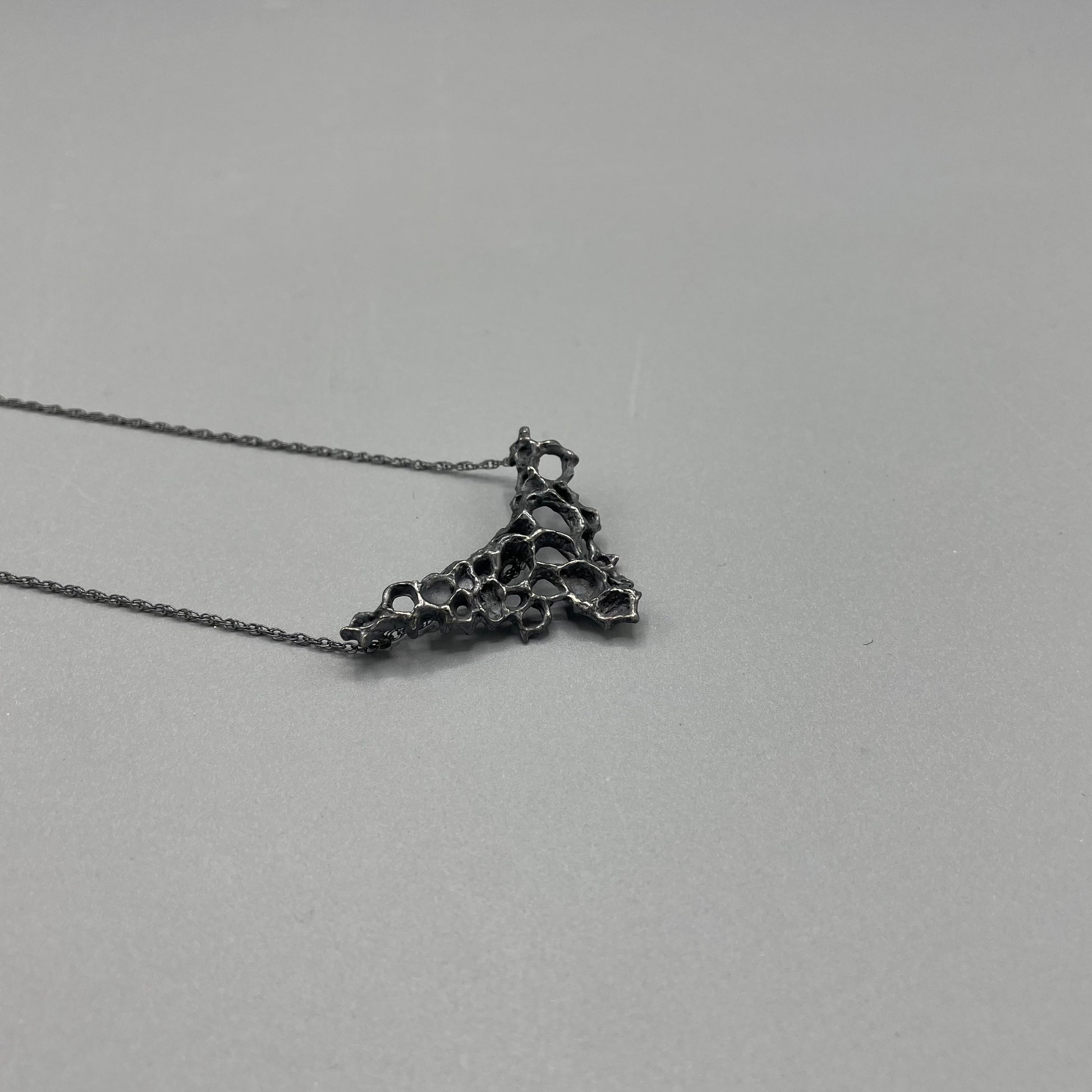 Handmade oxidised silver pendant by Beca Beeby. Cast from wax and oxidised, this pendant is inspired by the natural forms of natural honeycomb.