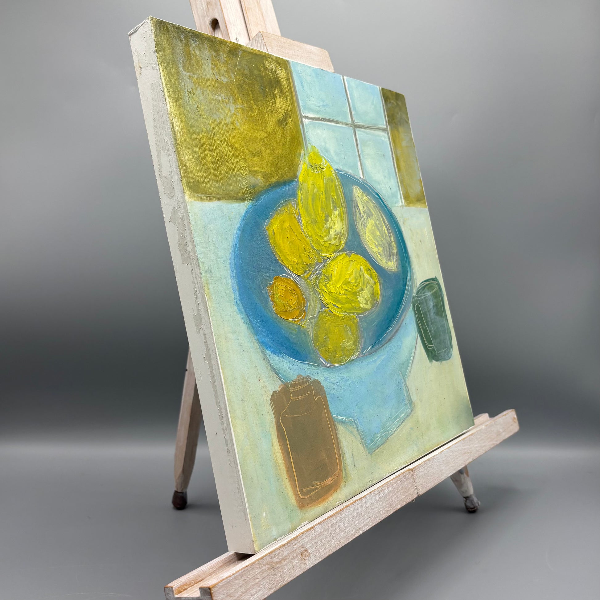 "A contemporary painting about a snap shot in time. The cafes and beaches of St Ives have become a favourite place to find me. Walking the coastal path, lazing on the beach watching boats and Turnstones scurrying on the pavements. A very special seaside place that evokes the ghosts of artists of the past."