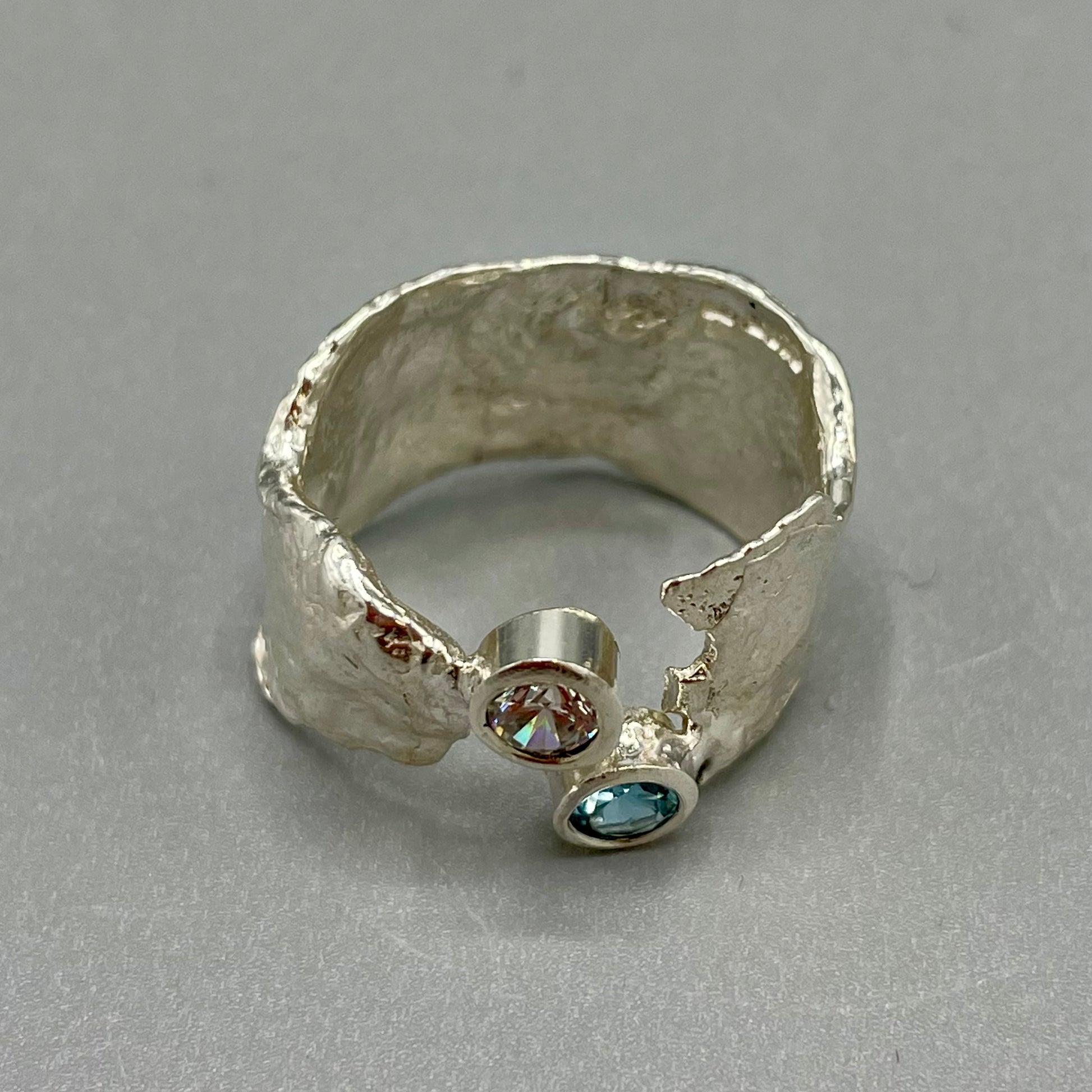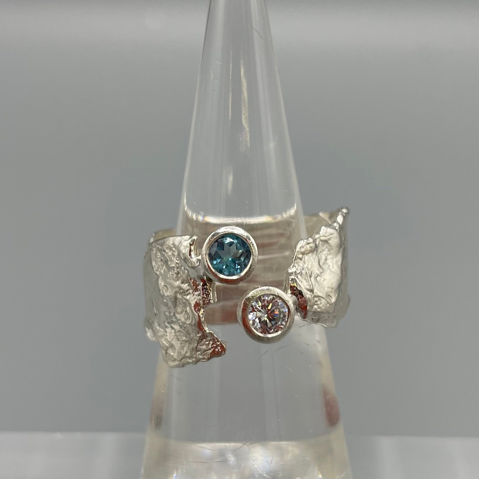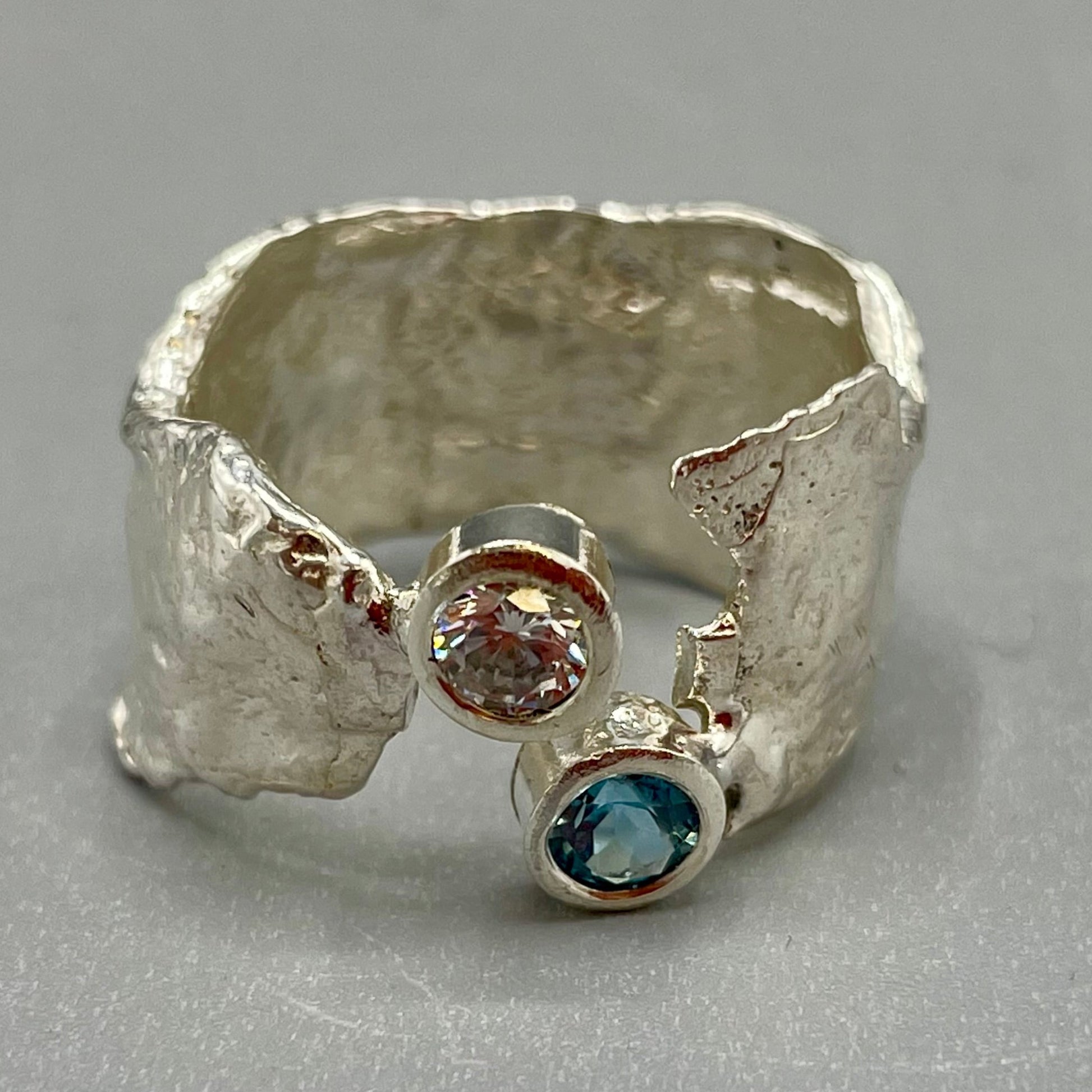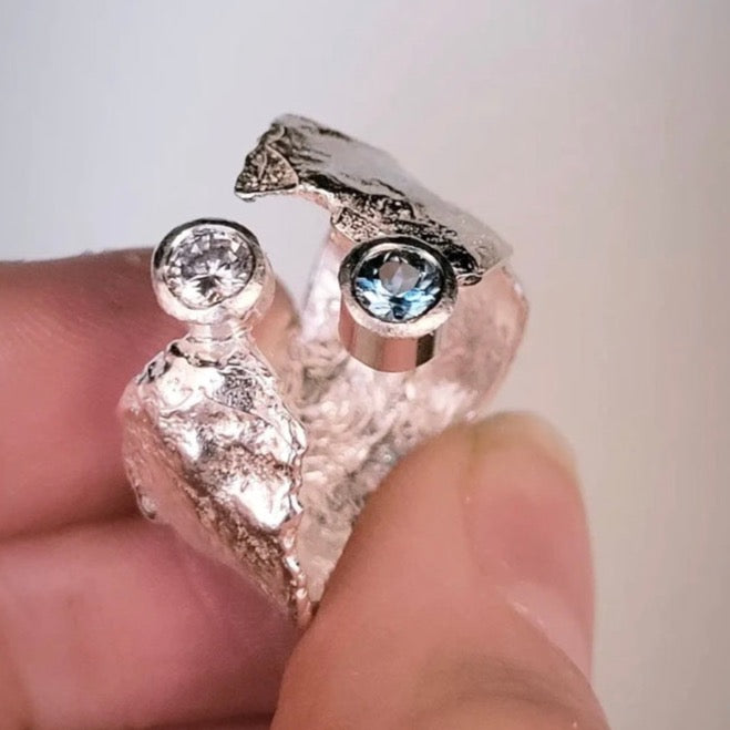 A Sterling Silver Faerie Tale ring set with stunning Blue Topaz & Cubic Zirconia gemstones.