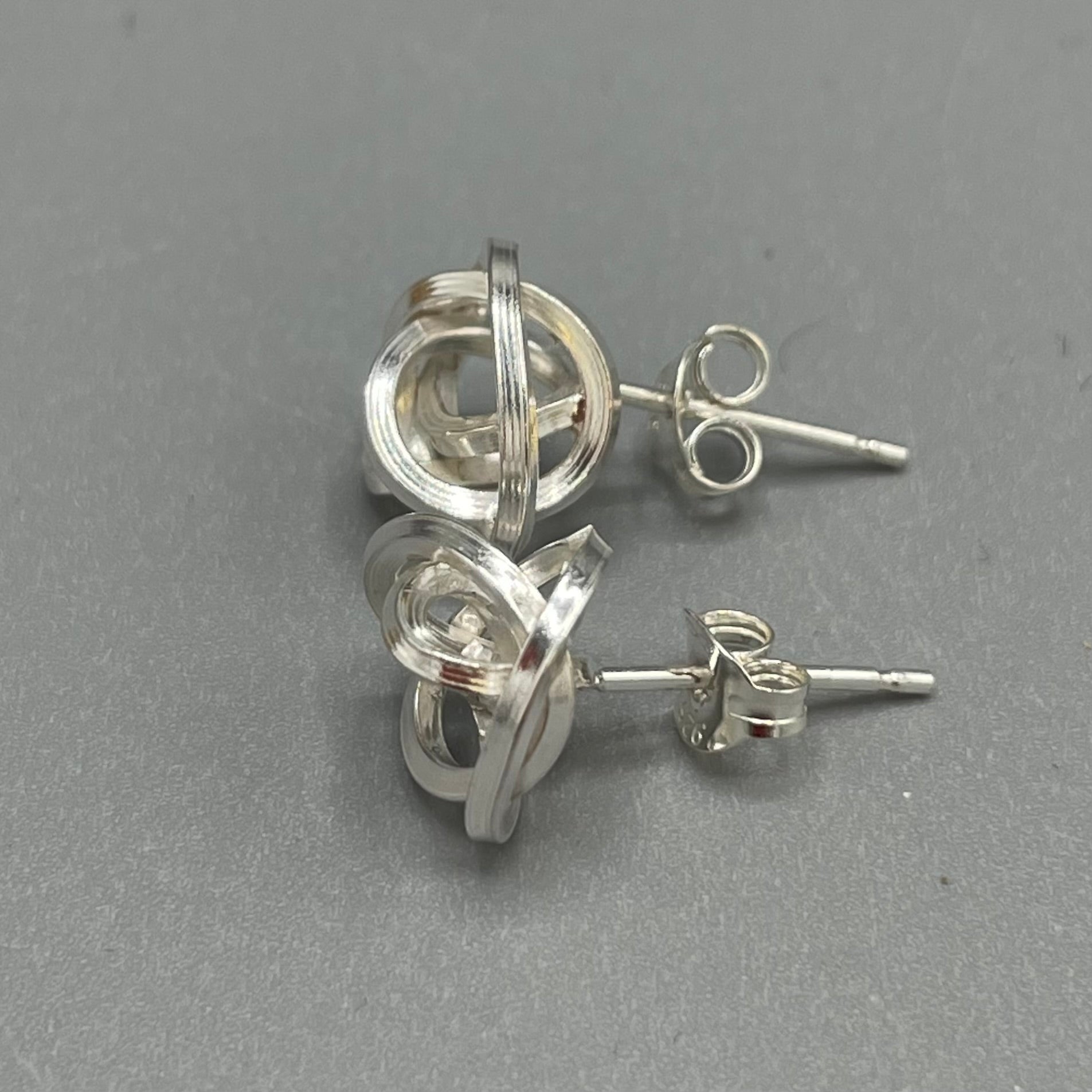 Beautiful sterling silver knot earrings handmade using sterling silver square wire. Sterling Silver Ear Posts.