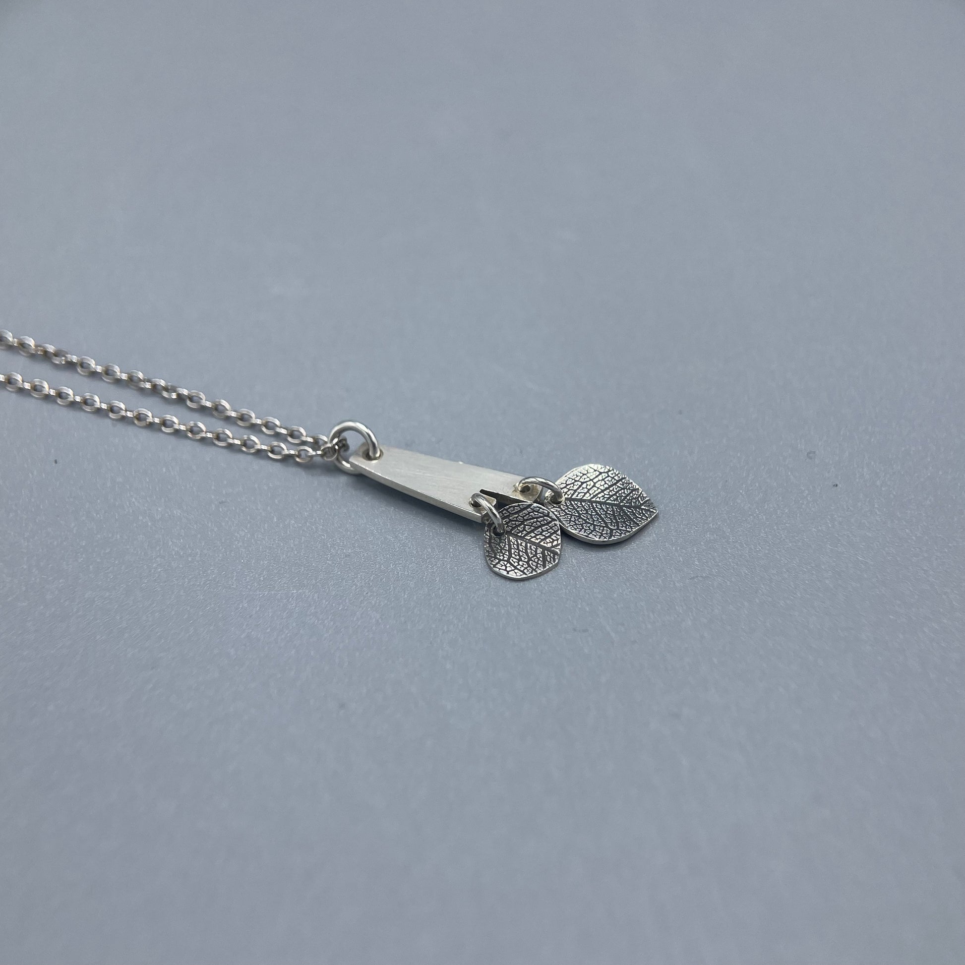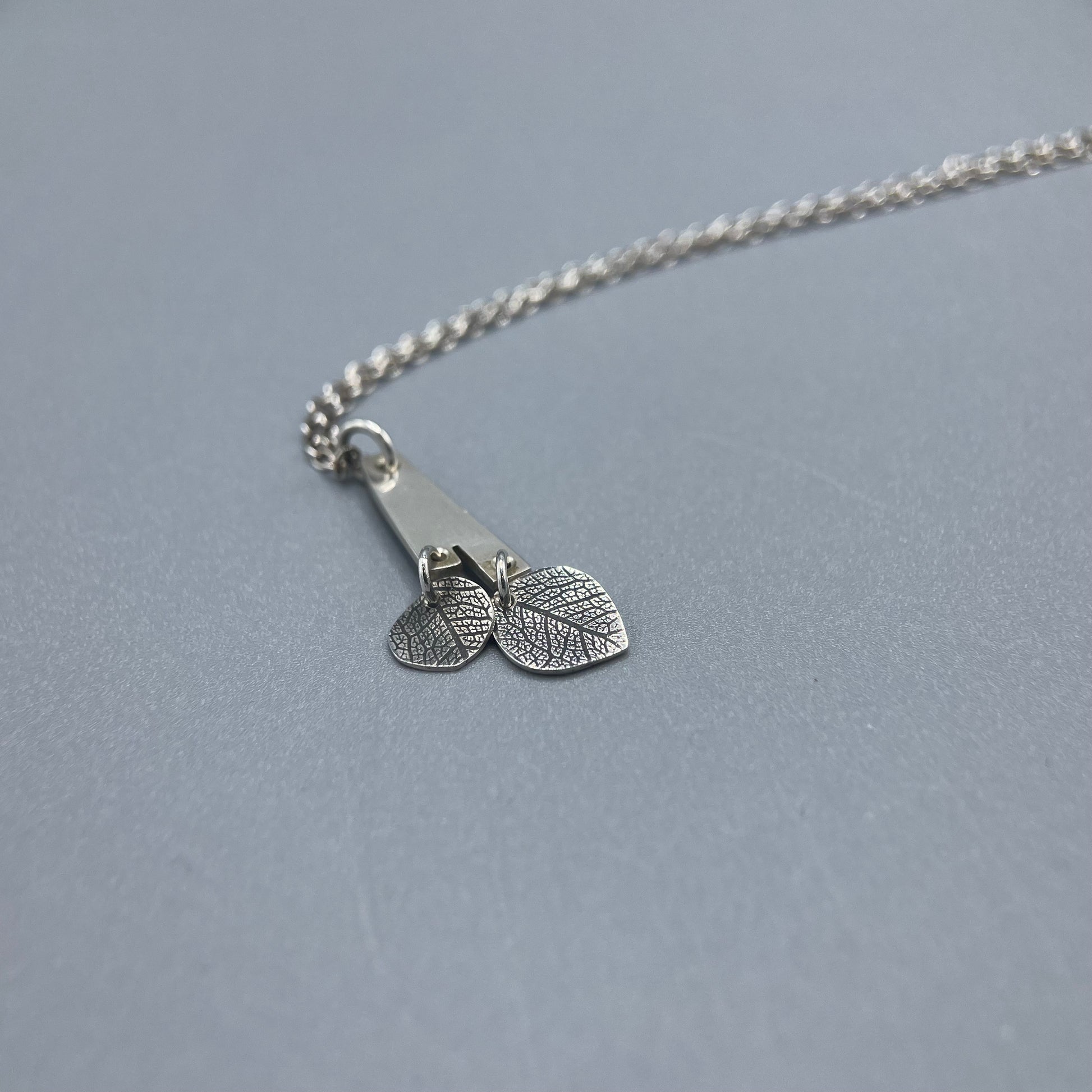 Sterling Silver pendant with exquisite patination detail inspired by nature.