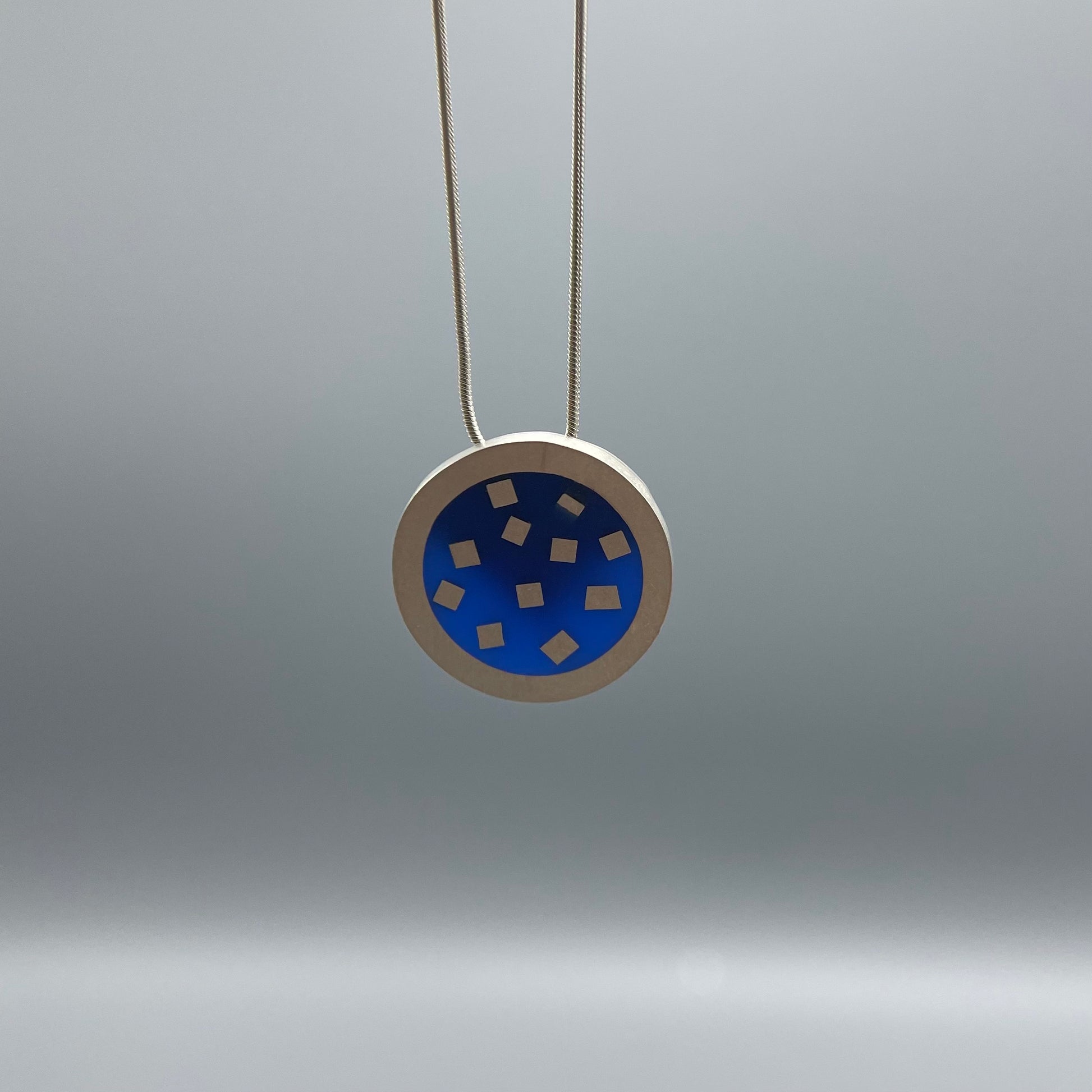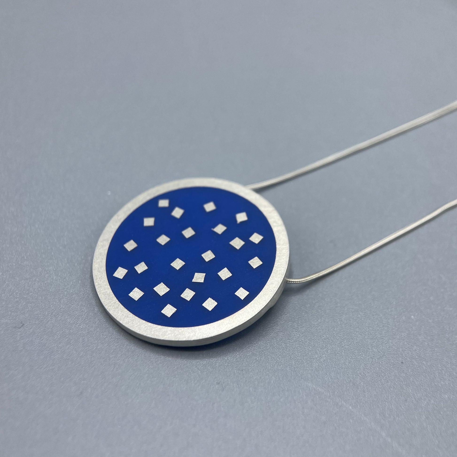 Eco-resin and recycled sterling silver pendant on 18” snake chain. Ruth's collection is inspired by the night sky and translates into English as 'Look Up'