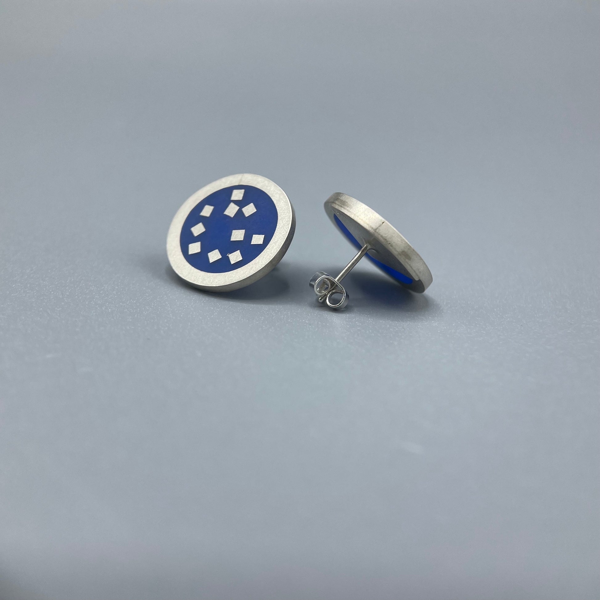 Eco-resin and recycled sterling silver stud earrings.