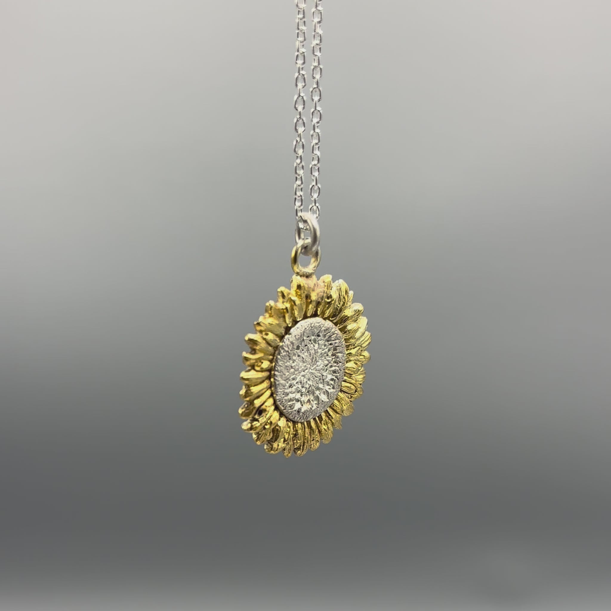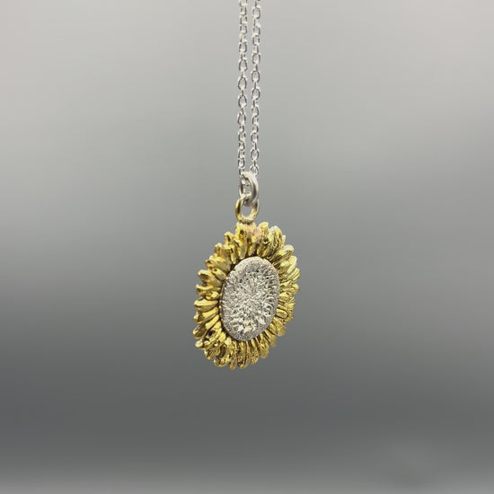 Sunflower Pendant made of silver and gold-plated silver.