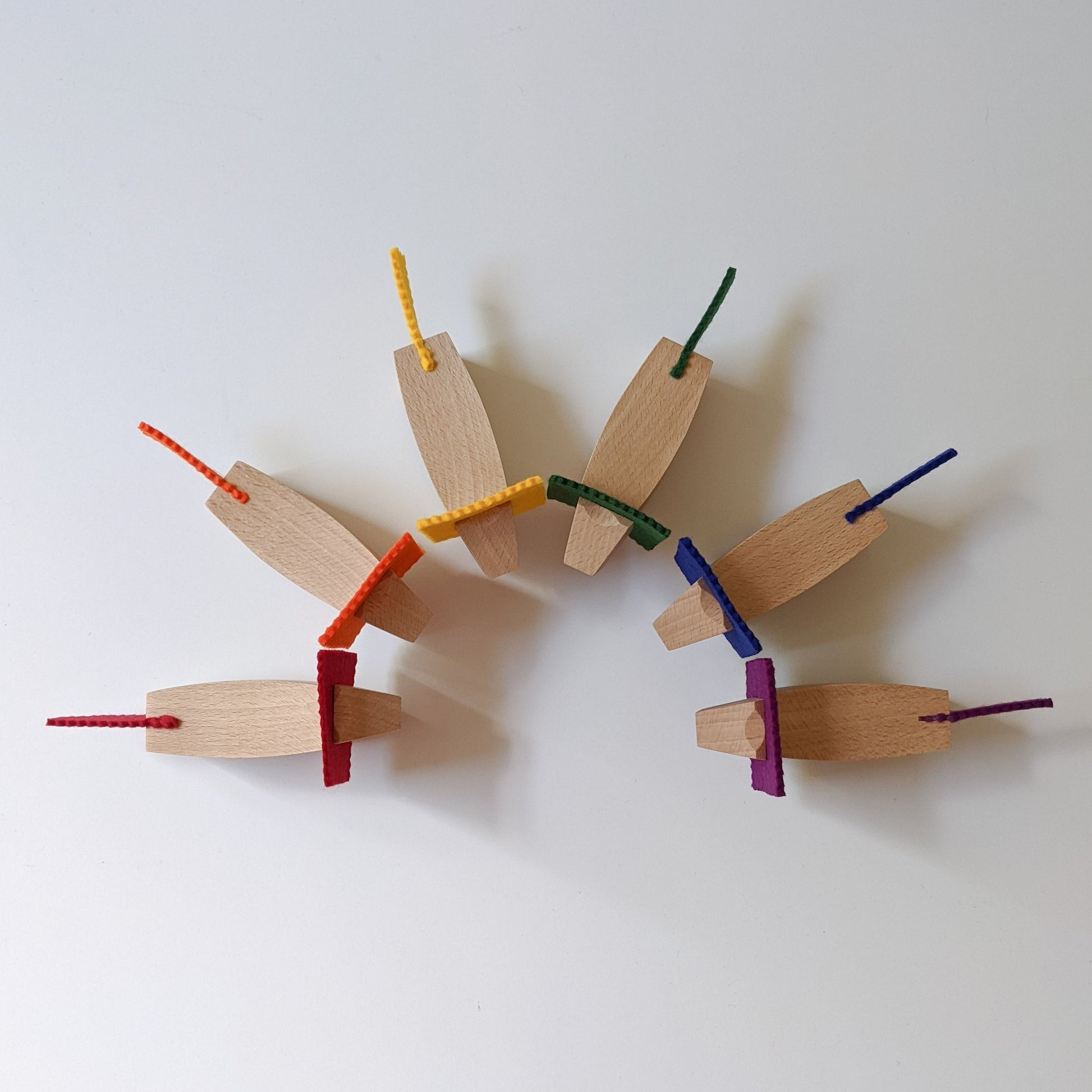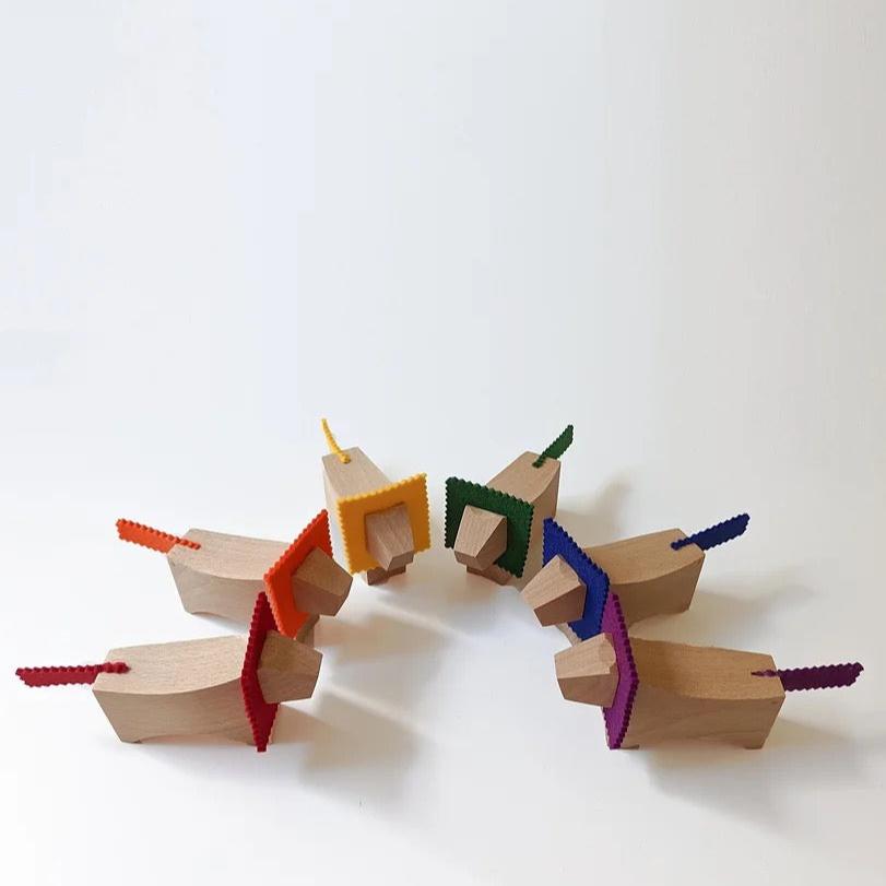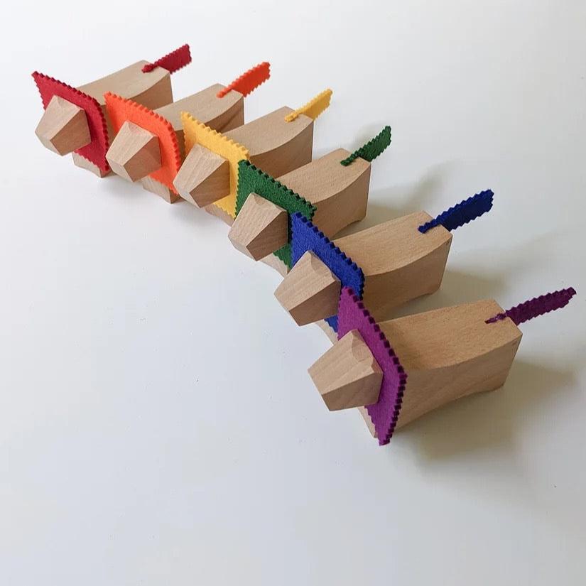 Lions in beech with 100% wool felt manes and tails.