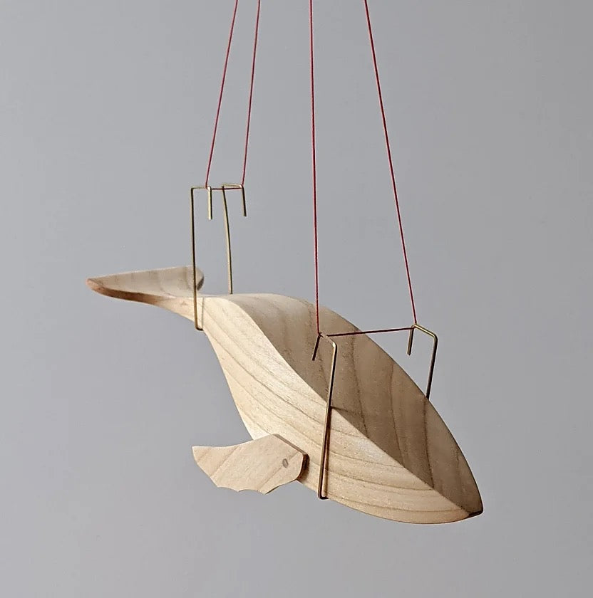 Hanging Humpback whale. It comes with purpose made brass hangers and hanging cord in red.