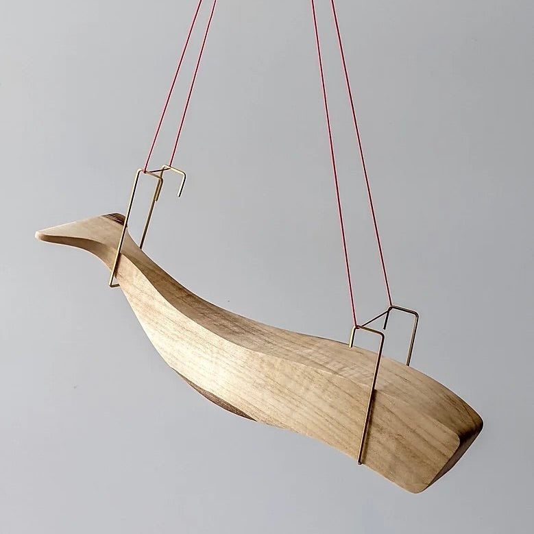 Hanging Sperm whale. It comes with purpose made brass hangers and hanging cord in red.