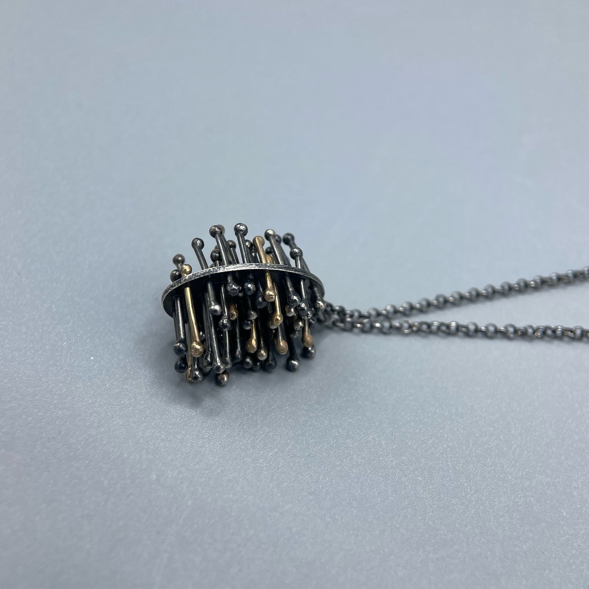 Blackened sterling silver, 9ct gold moss pendant. This piece catches the eye and could be worn to accompany and elevate an outfit. This moss pendant would be the perfect gift.