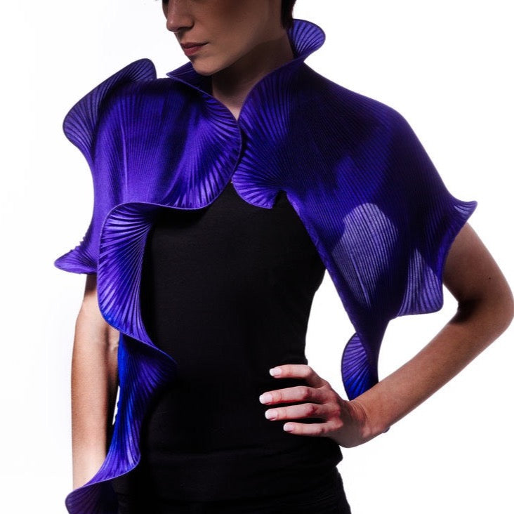 From Nawal’s primary collection of day to evening scarves made from only the finest man-made fabrics. Each item is handmade, stitched and fused with a variety of fabrics to retain each pleat even after wear or wash.
