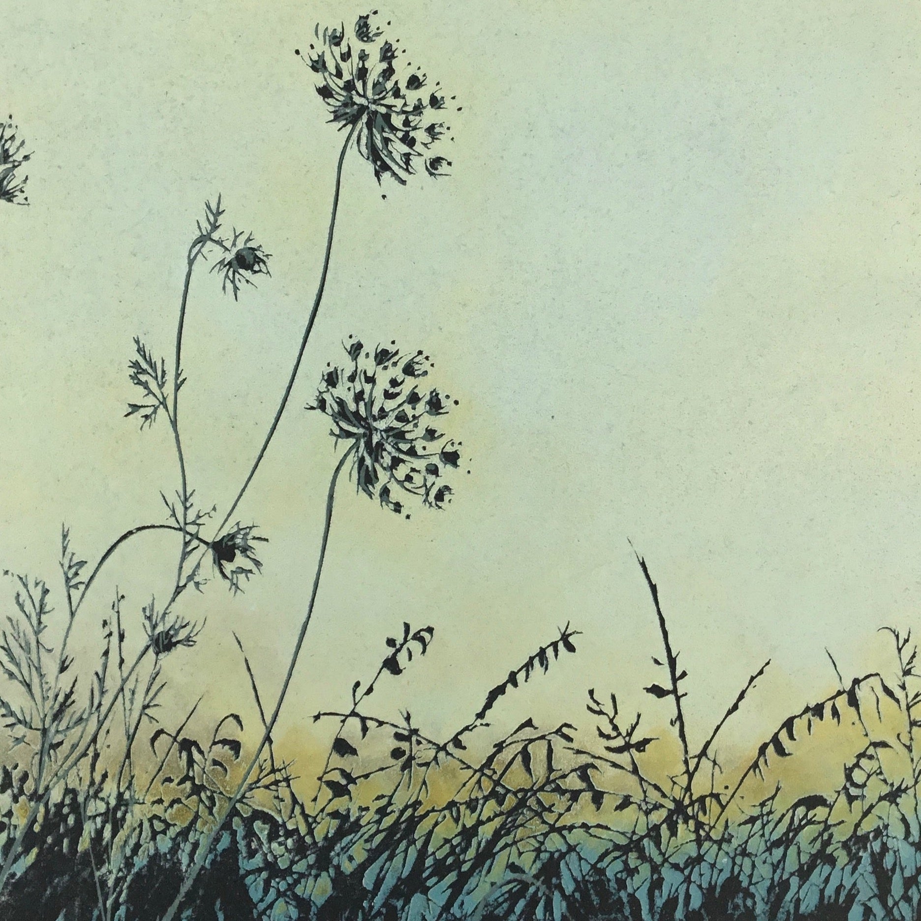What we love is the way her reduction print technique leaves a textural quality to her work. the additional use of oil based inks gives an etheral sheen to each piece, giving a real sense of the Devon landscape; coast, moor and riverside.