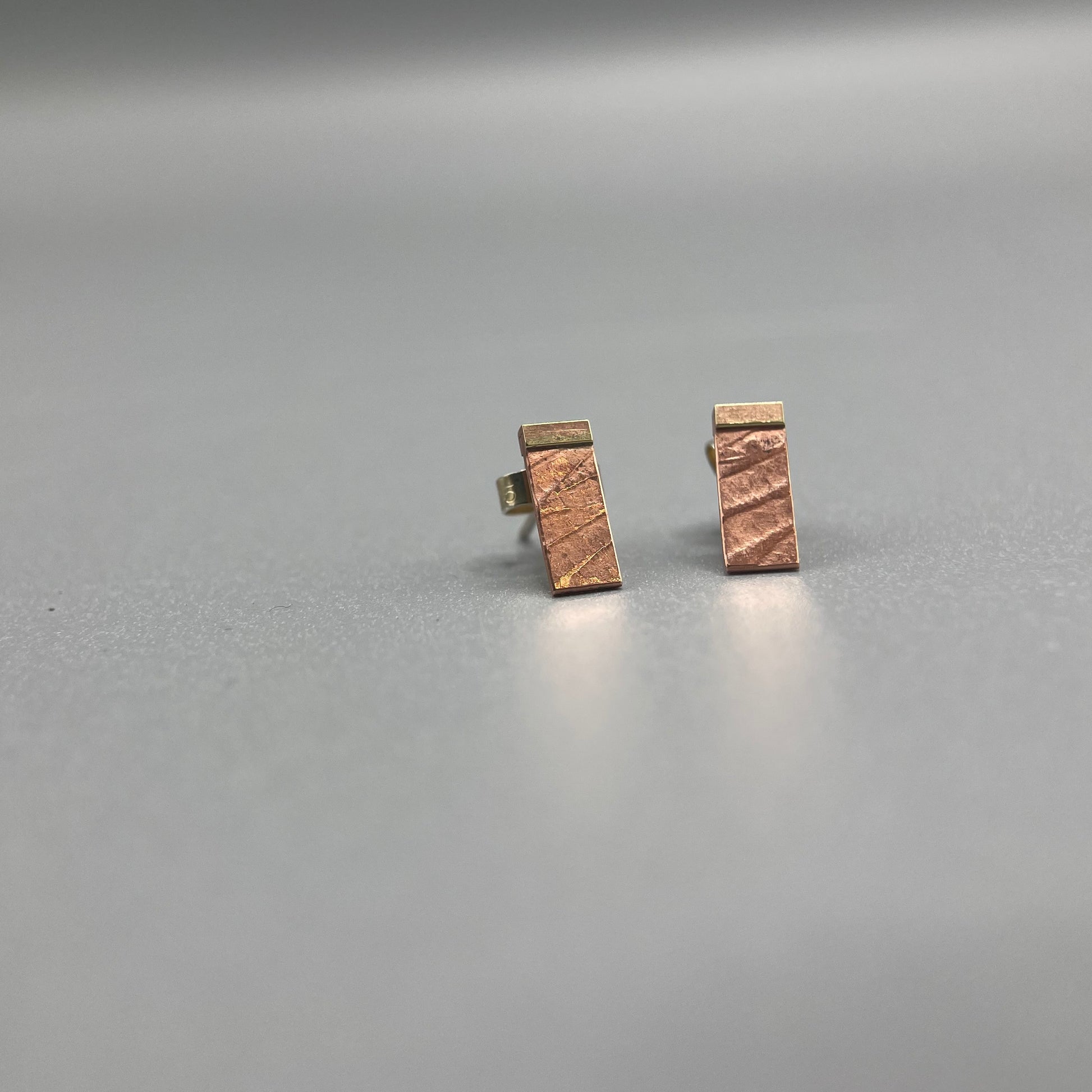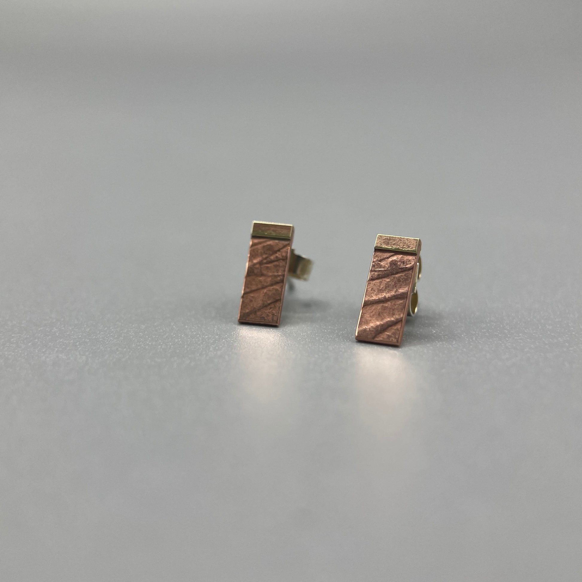 - Sterling Silver and Copper Rectangular Studs with Bronze detail.