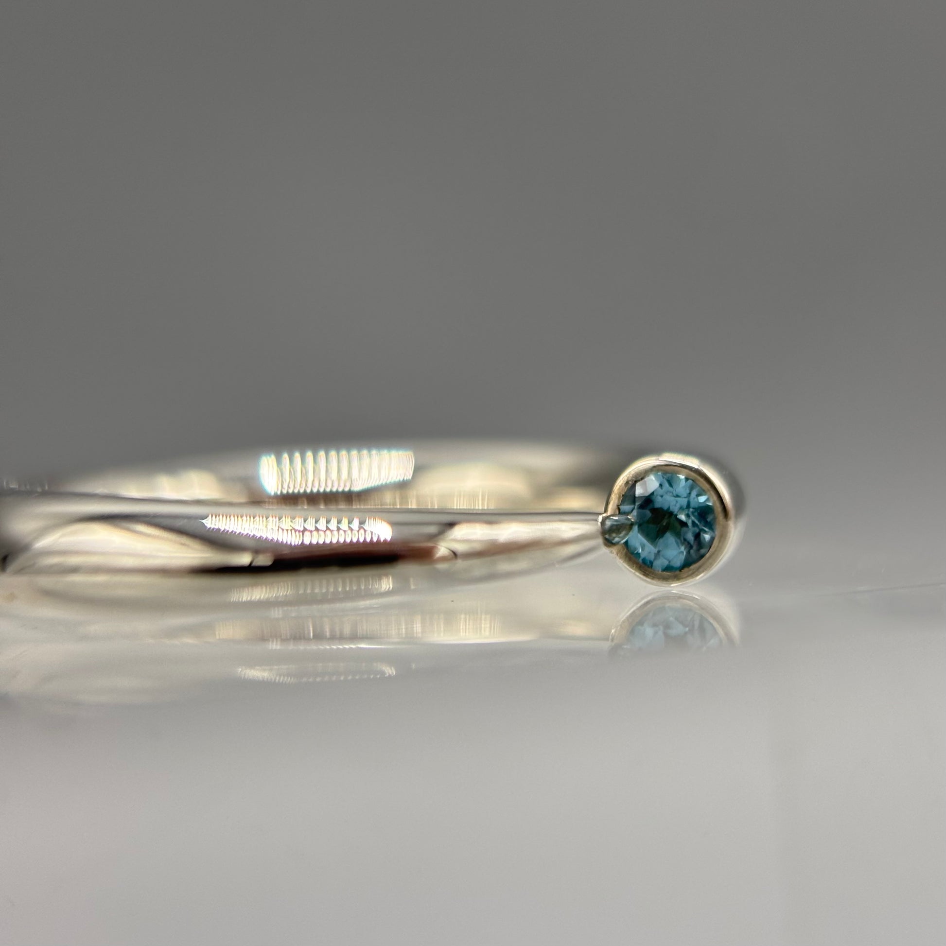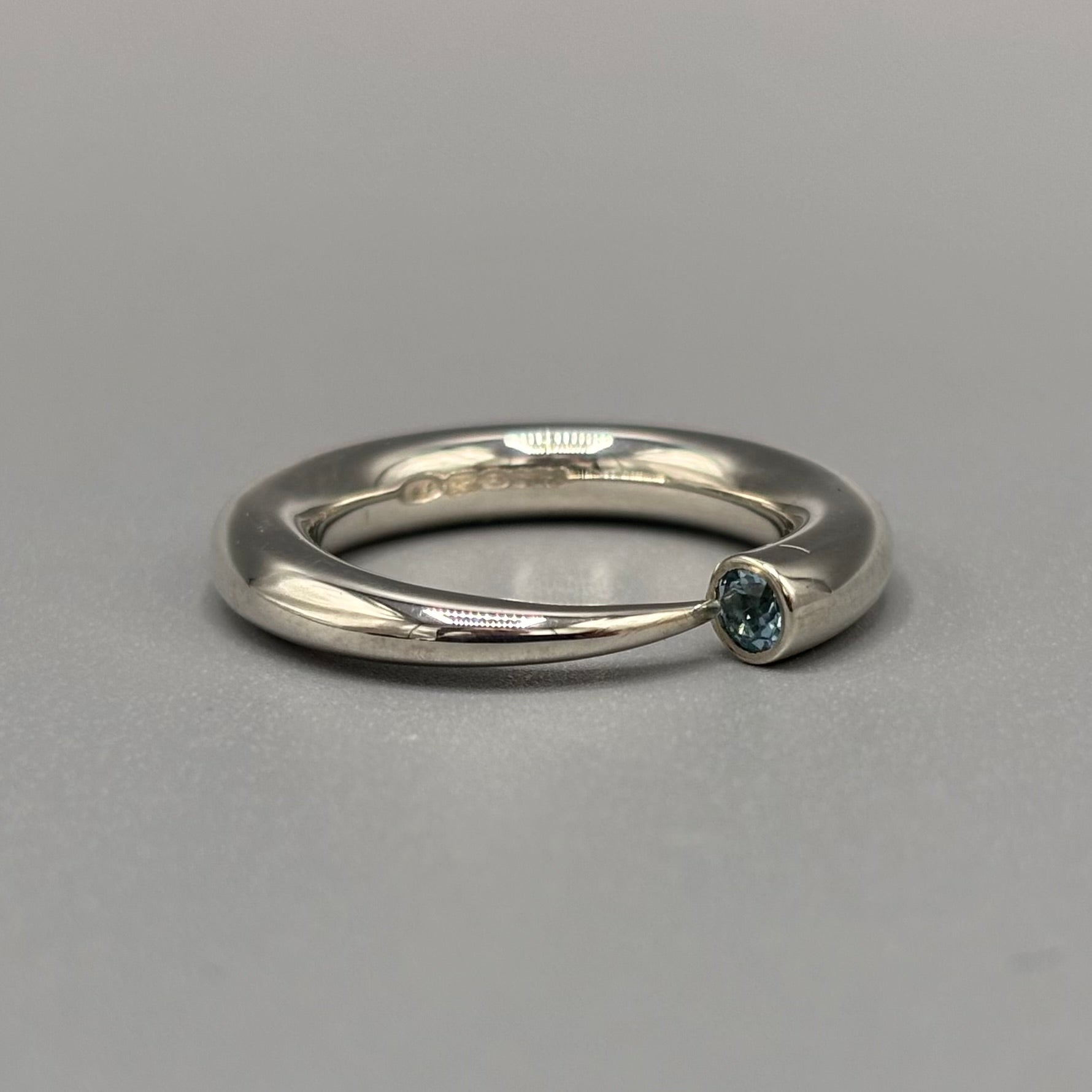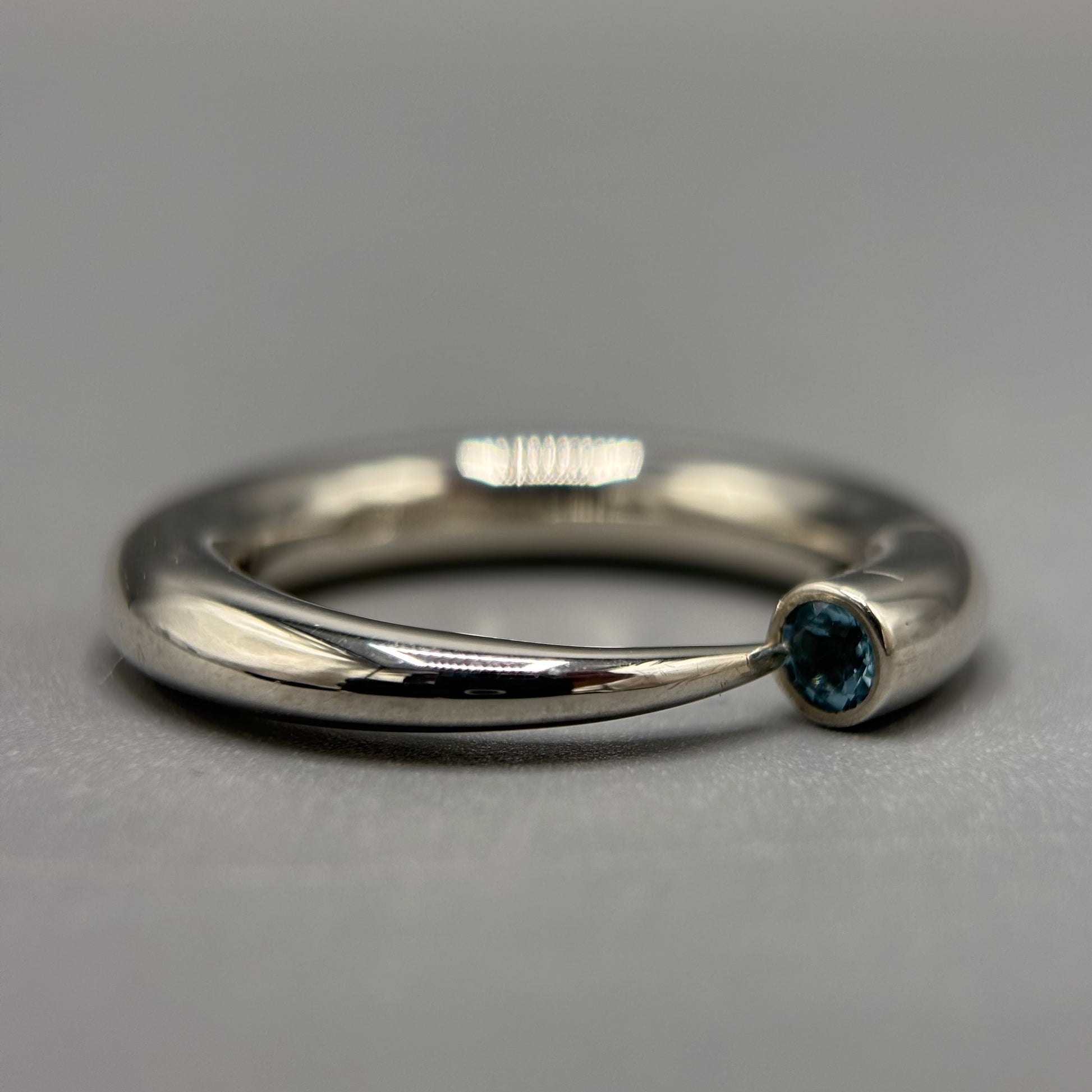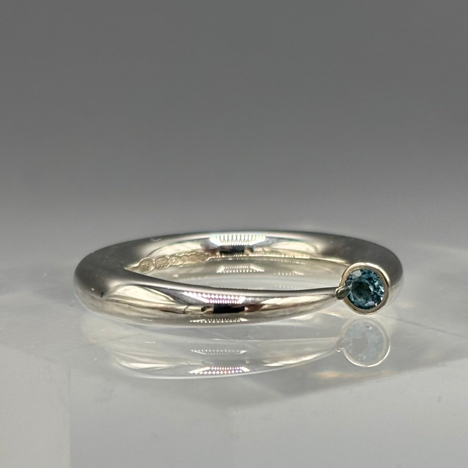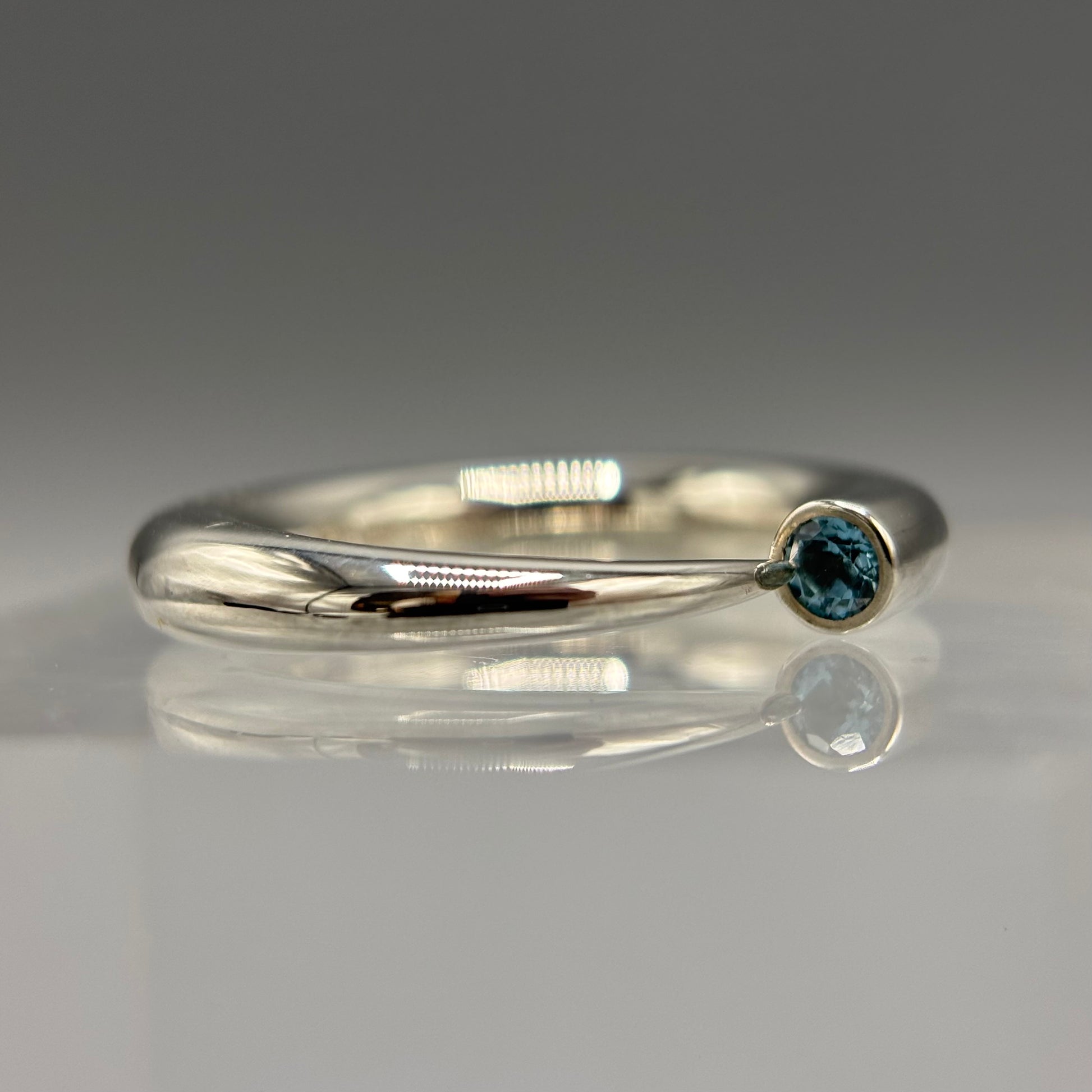 Hand forged silver tapering contemporary ring with a comfortable rounded band. The solid sterling silver band tapers to a point from 4mm and is end set with a 3mm faceted gemstone. The ring is one of the original designs in Paul’s timeless classic ”wiggly” collection.
