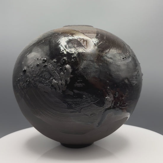 This exquisite black moon jar is hand thrown by Rosa Wiland Holmes.