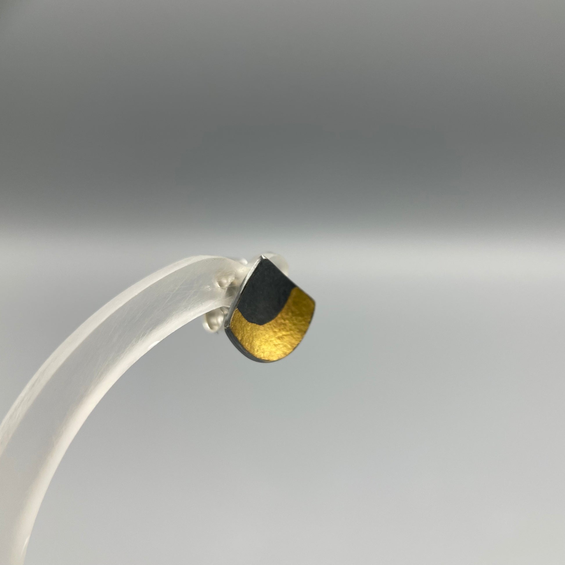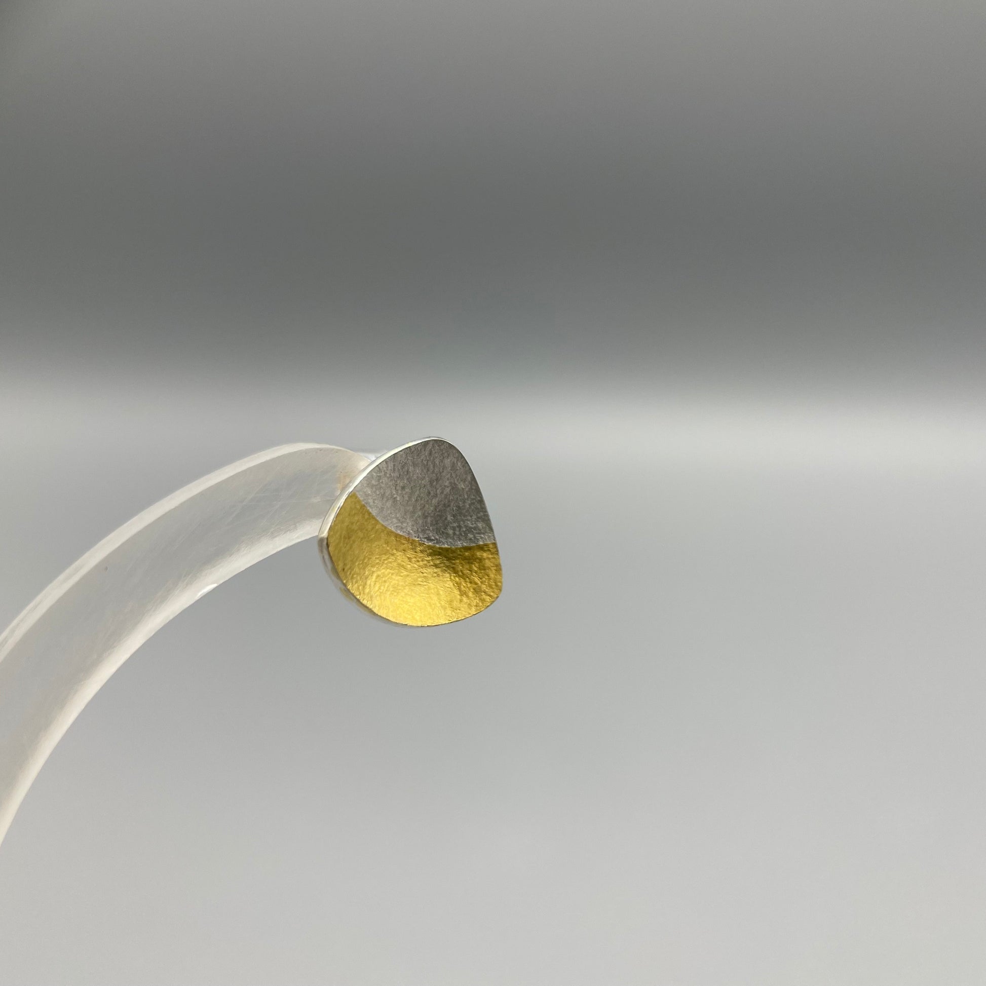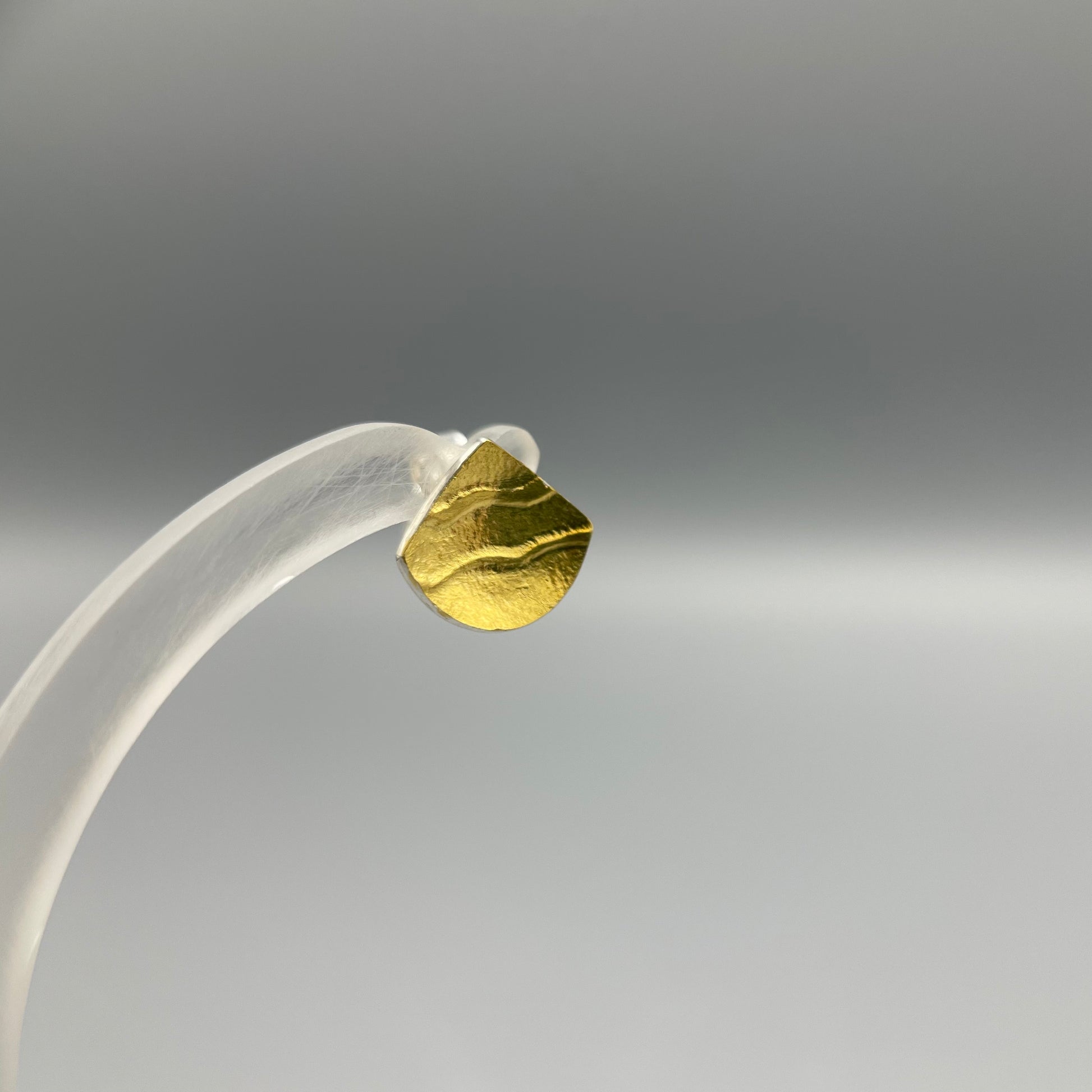 Sandra is a jeweller based in South Wales, where she practices the Korean kuem-boo technique with gold and silver. She roll-prints to create her wave textures which accompany the contrasting gold.