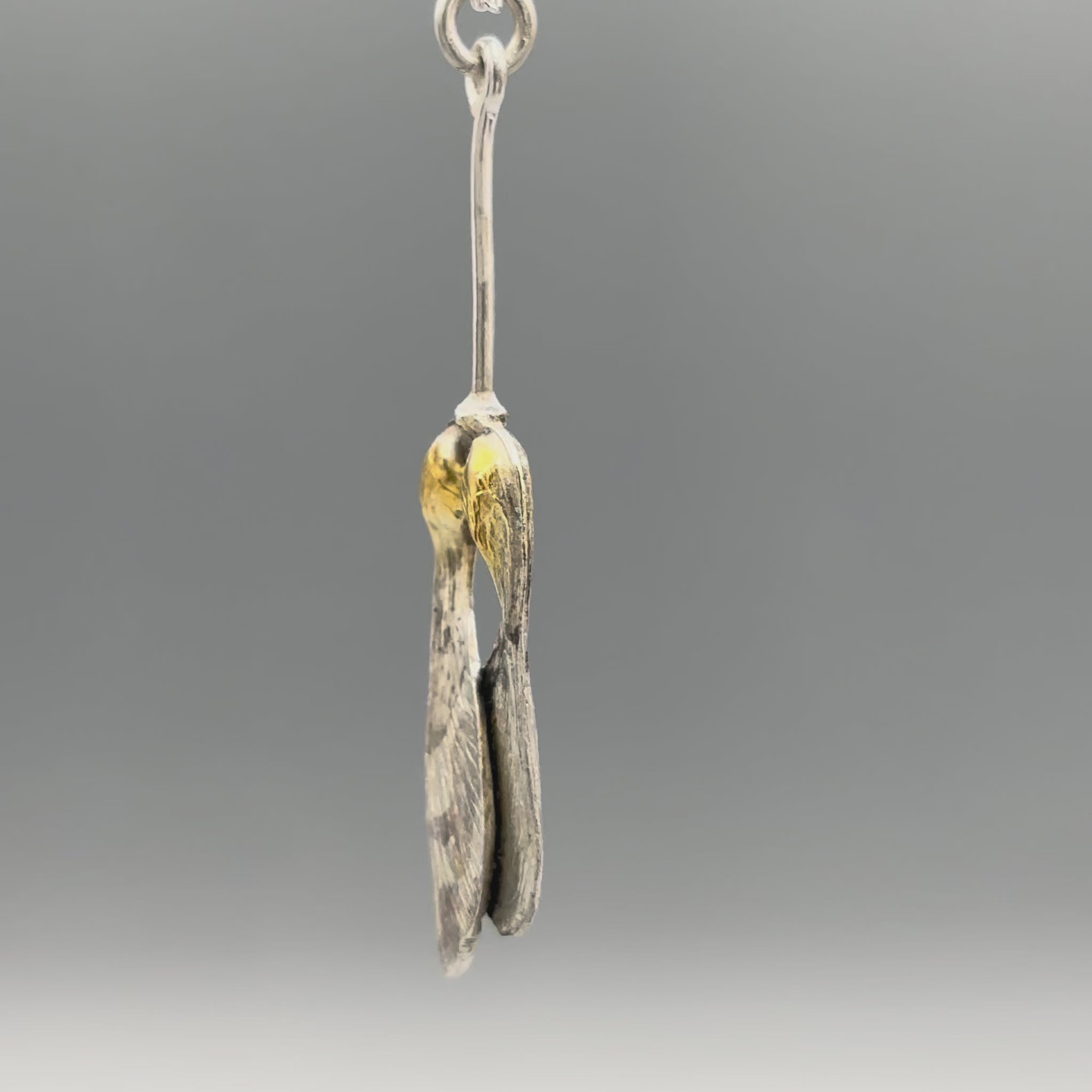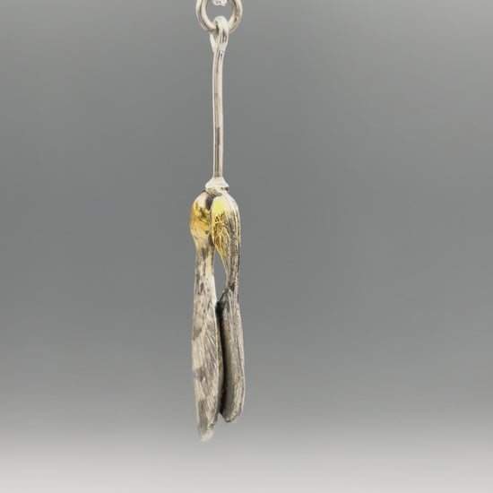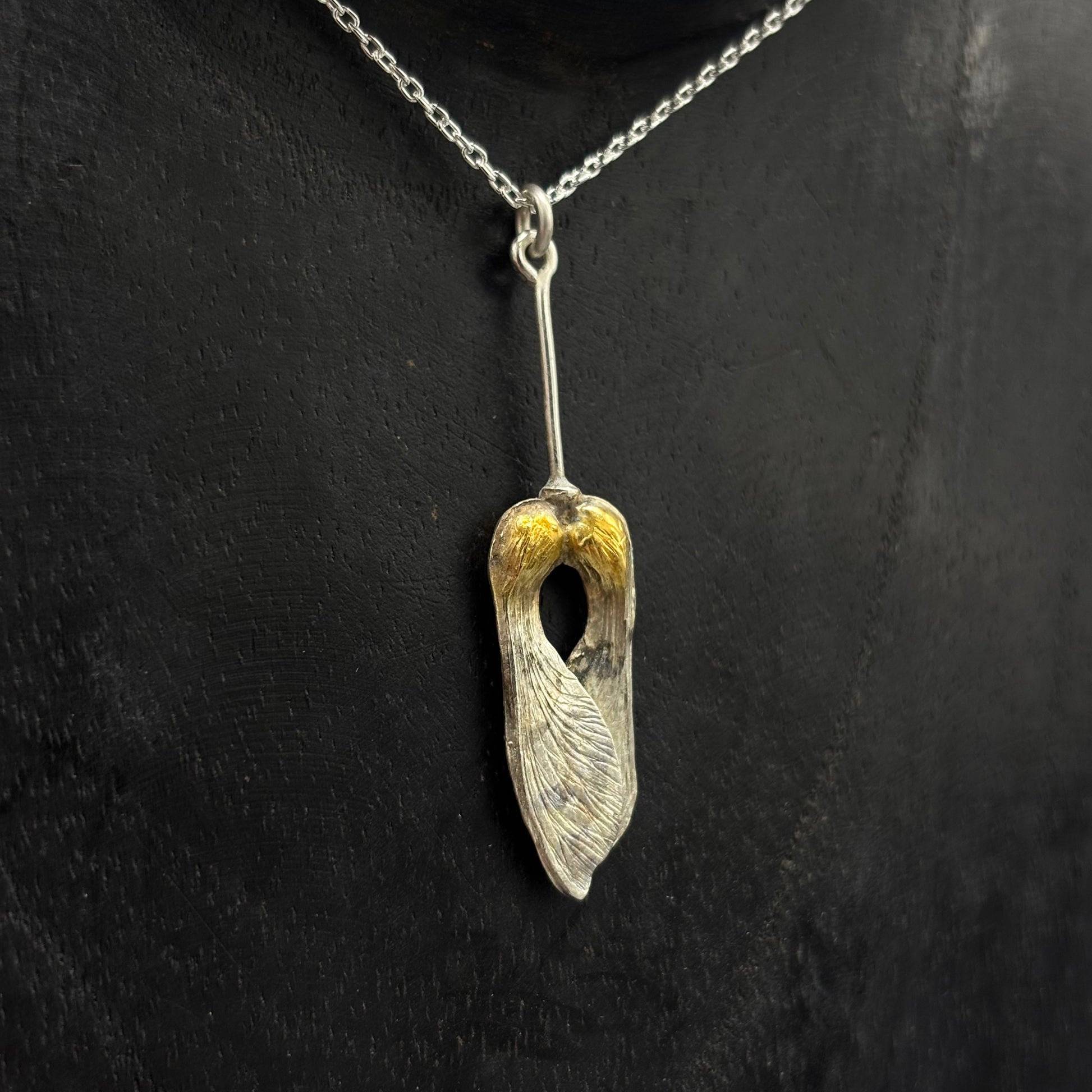 Sterling Silver and Gold-plated seed pod drop Pendant necklace by Tim Blades. Wax-carved with exquisite detail.