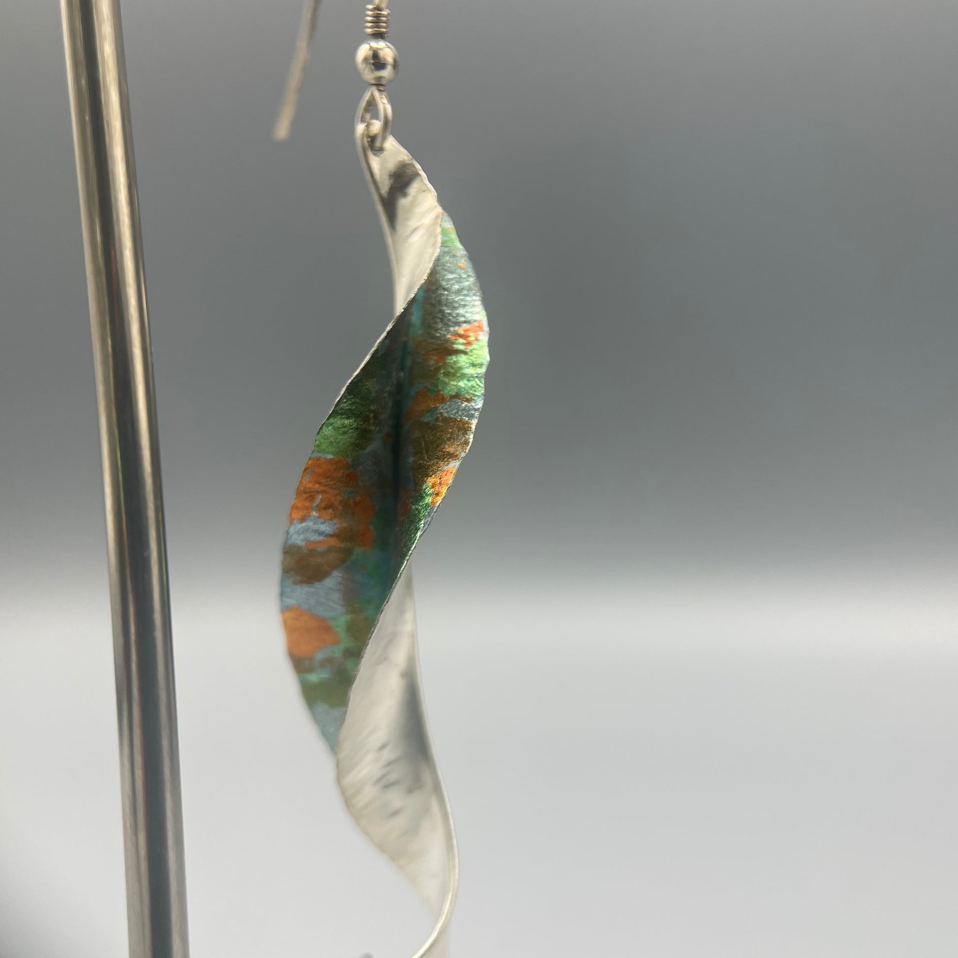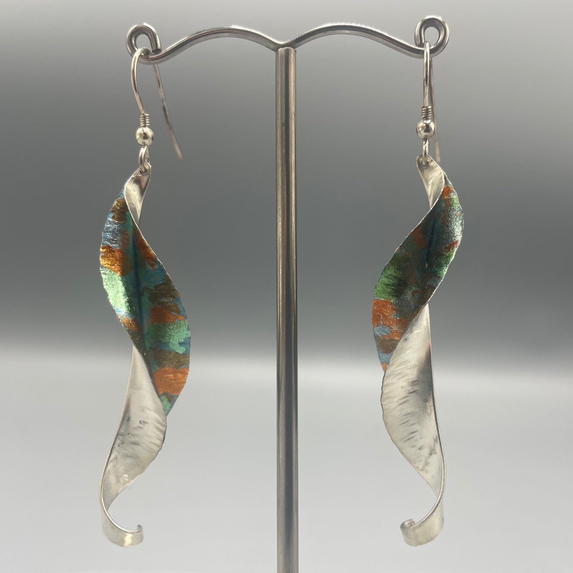 Silver Drop Earrings with colourful gold and silver foils inspired by Willow by Victoria Sackwild.