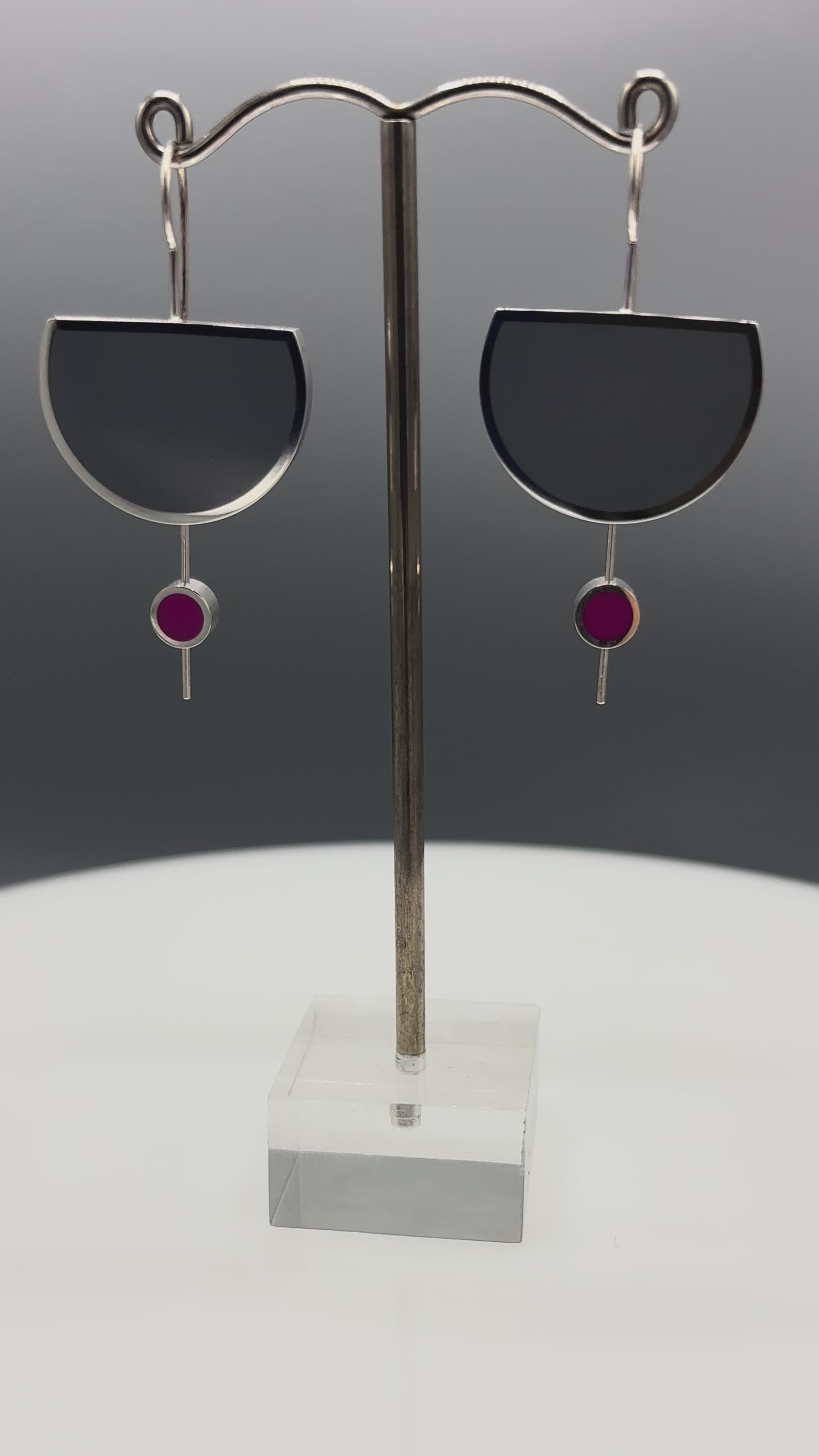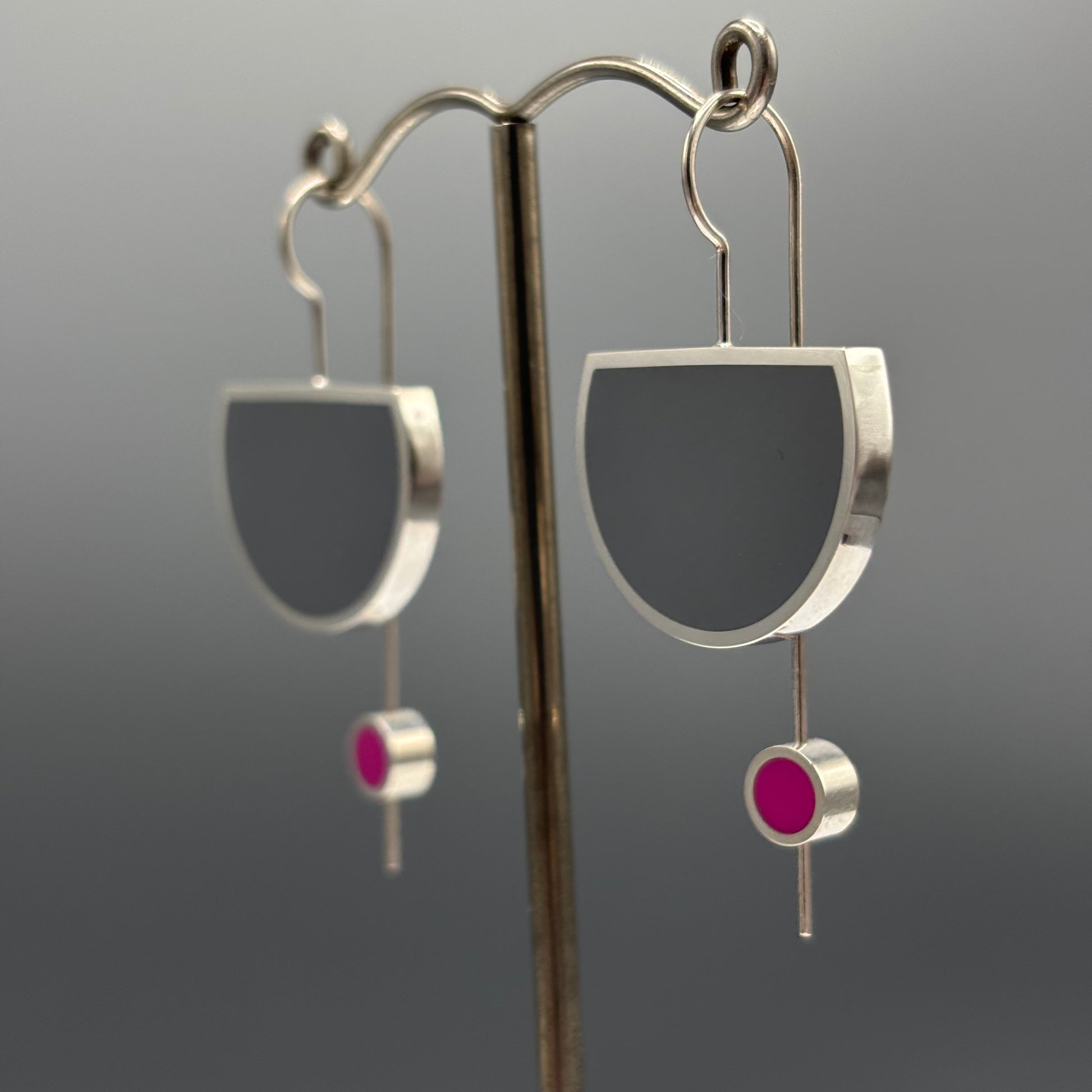 Wilde Works - Sterling silver and resin ‘Eclipse’ Earrings (Grey/Hot Pink)